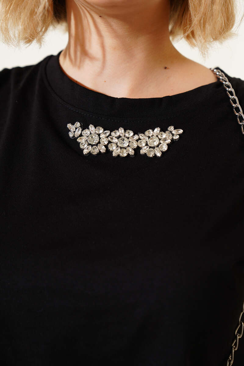 İnci Süslemeli Etekli Triko İkili Takım Siyah