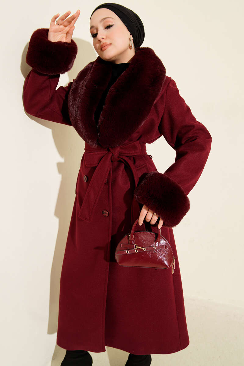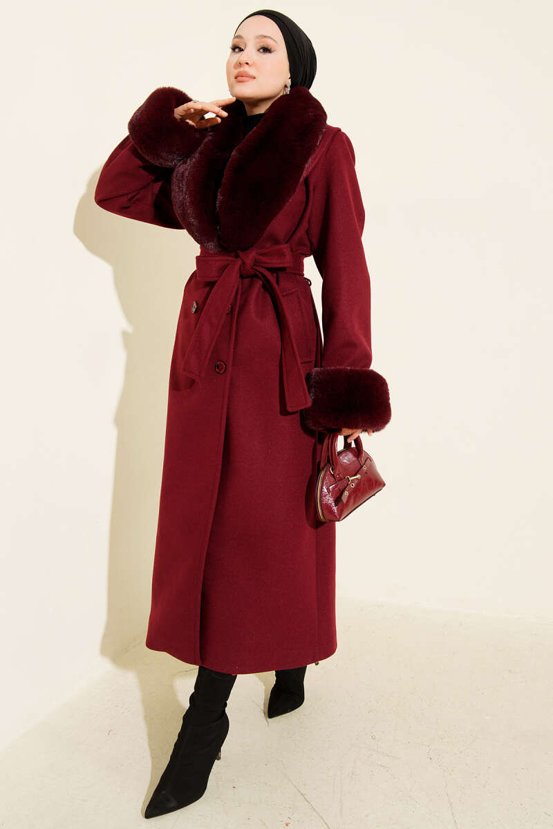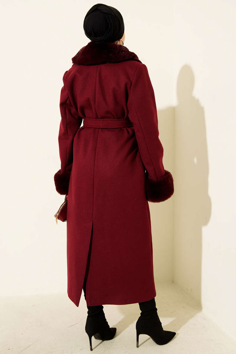 Yaka ve Bilek Kürklü Kaşe Kaban Taş