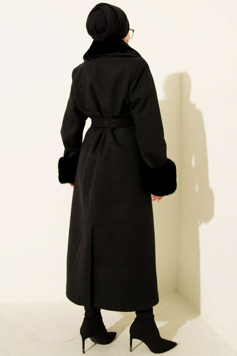 Yaka ve Bilek Kürklü Kaşe Kaban Taş