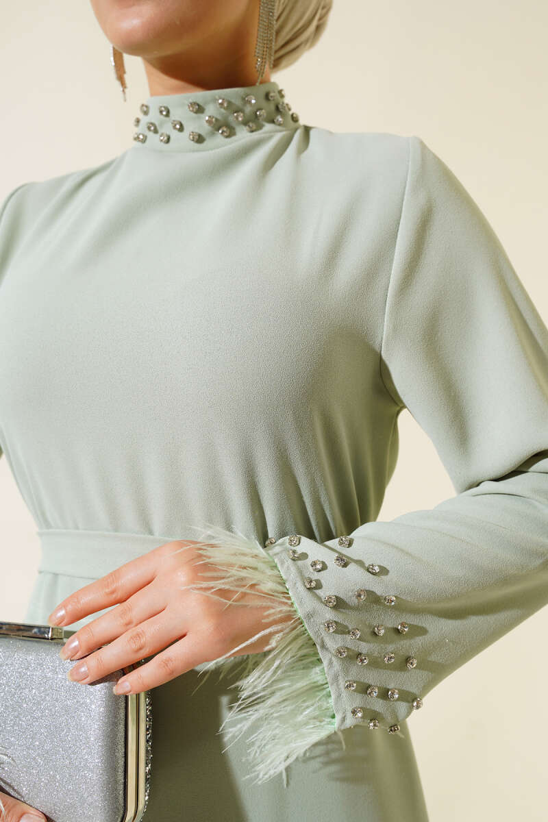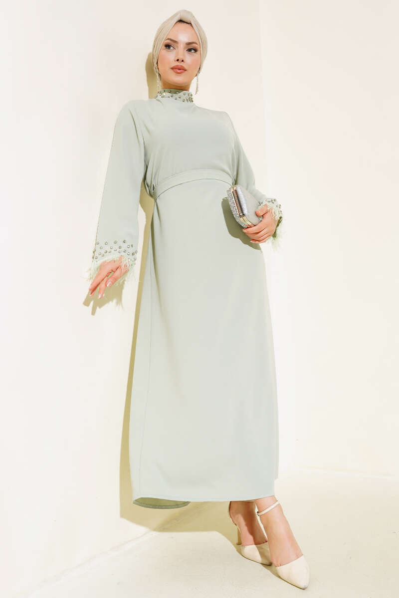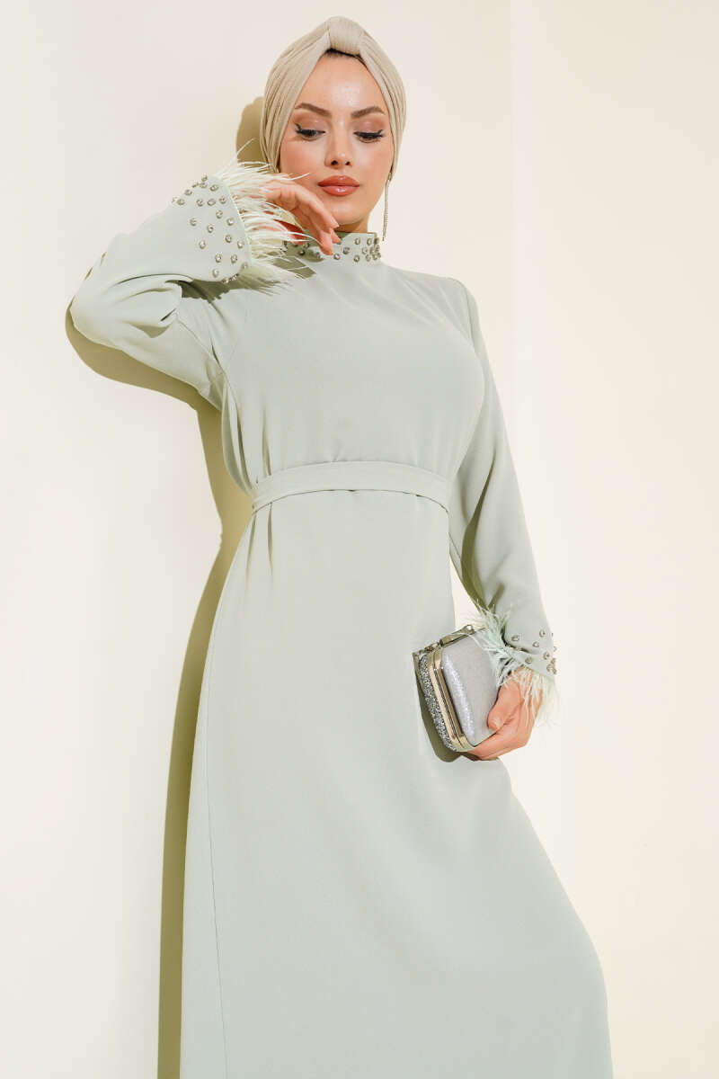 Katlı Jile Elbise Çağla Yeşili