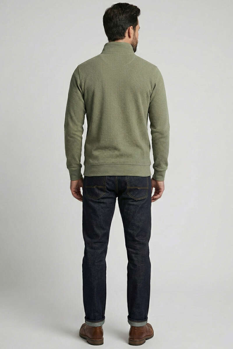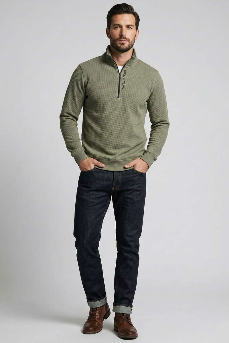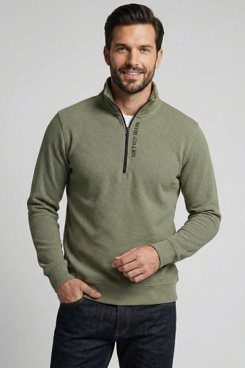 Yaka Yazılı Fermuarlı Erkek Sweatshirt Haki