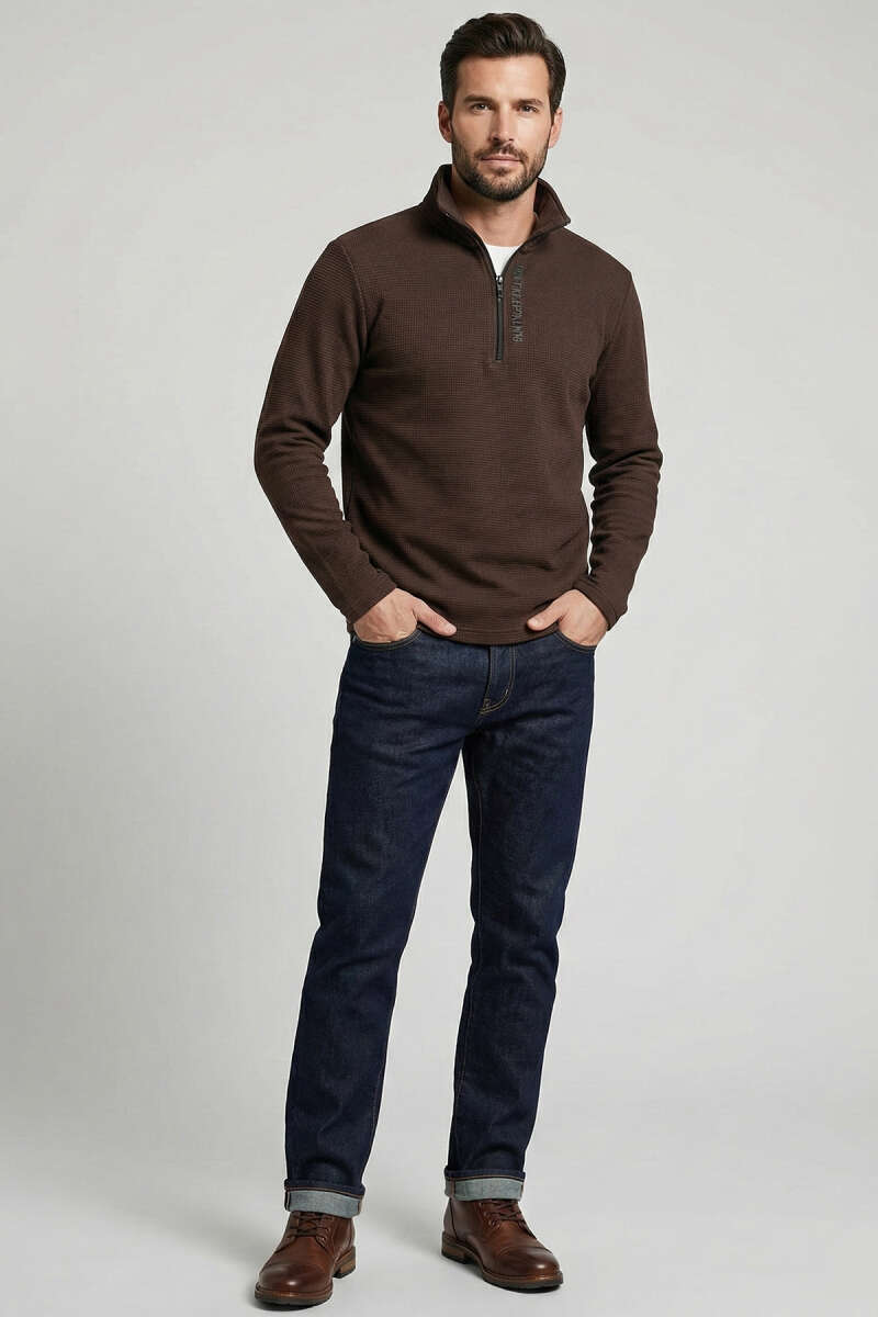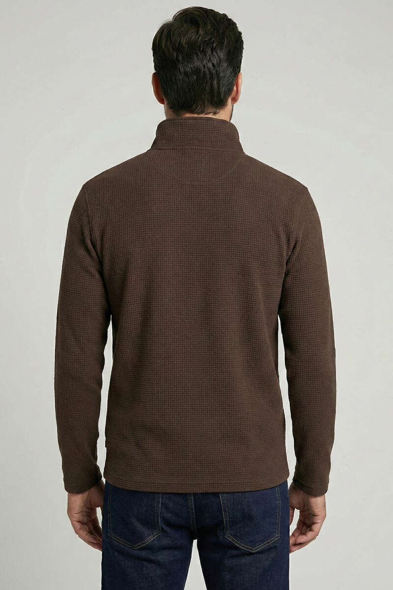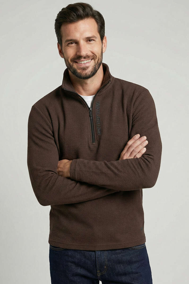 Yaka Yazılı Fermuarlı Erkek Sweatshirt Kahve