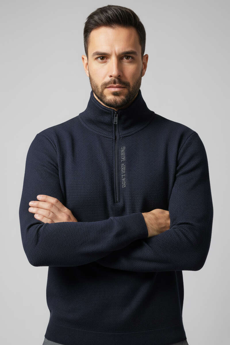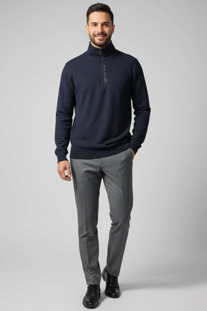 Yaka Yazılı Fermuarlı Erkek Sweatshirt Lacivert