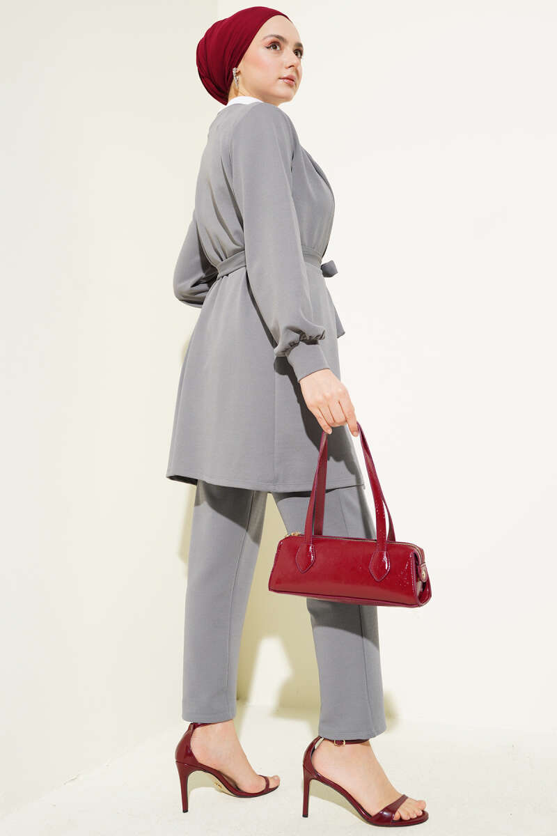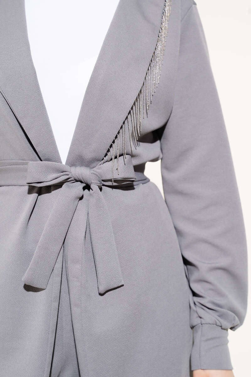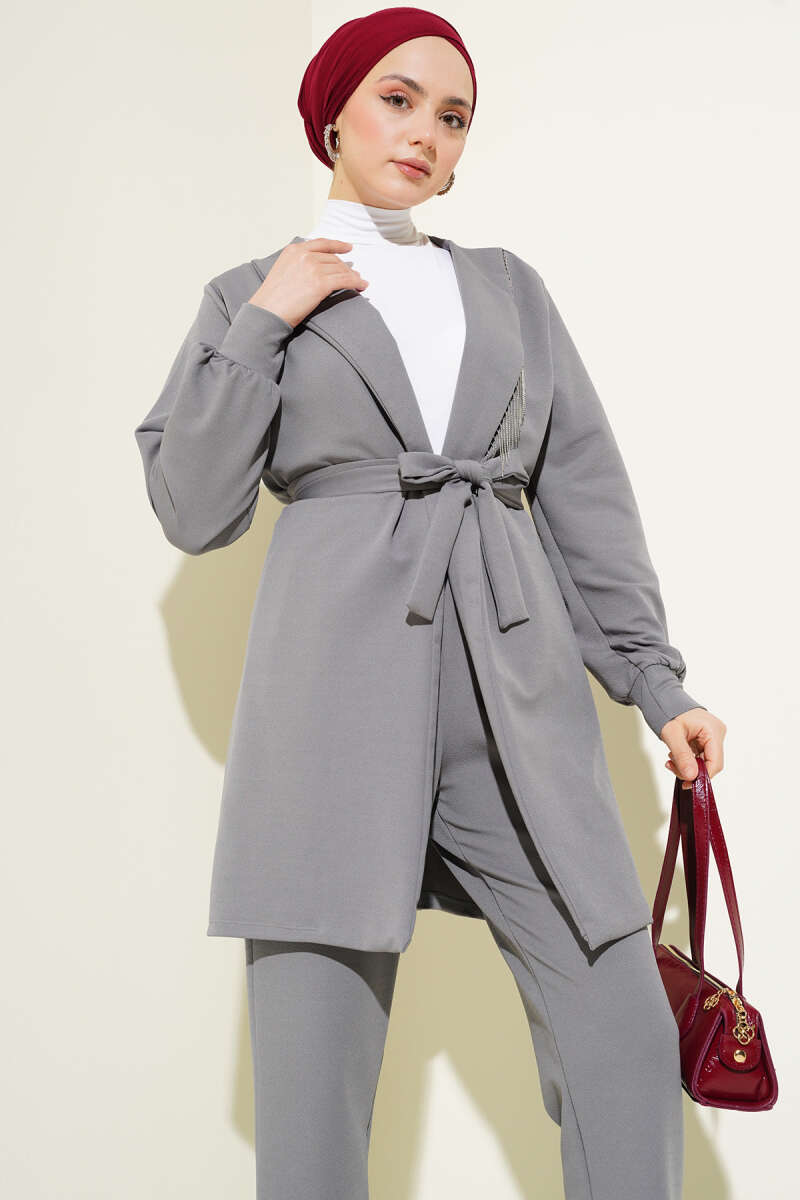 Yaka Zincir Püsküllü İkili Takım Gri