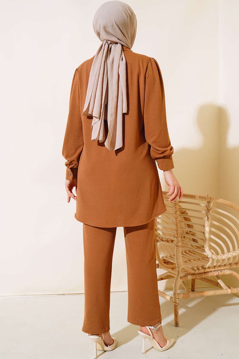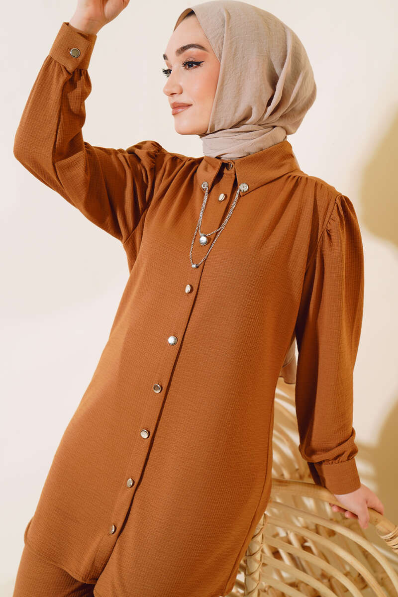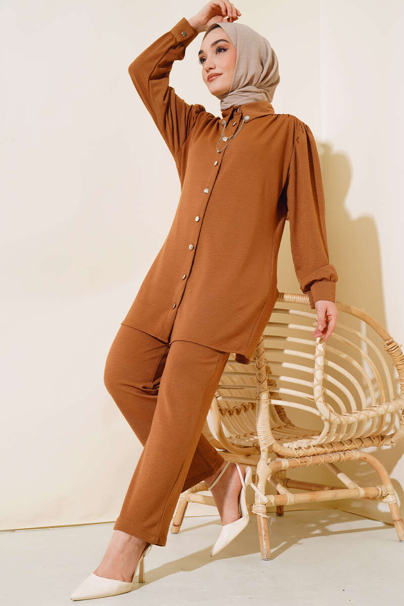 Yeni sezon ikili takım modelimiz  sizlerle beraber. Tuniğimiz boydan parlak düğmelidir. Kol bilekleri düğmelidir. Yaka detayı zincirlidir. Pantolonumuzun beli lastiklidir. Paçası bol paçadır. Cepsizdir. Takımımız çok rahat bir kumaşa sahiptir. yaz günlerinizde zevkle tercih edebilirsiniz. Renk seçeneklerimiz mevcuttur.