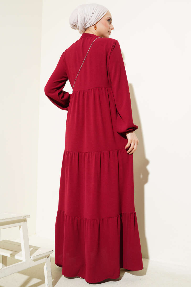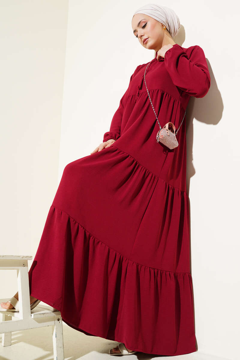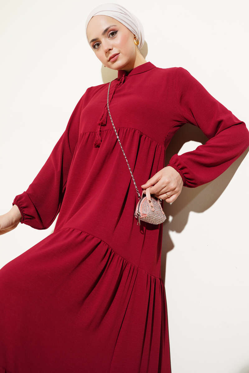 Pelerin Detaylı Pileli Triko Elbise Bordo