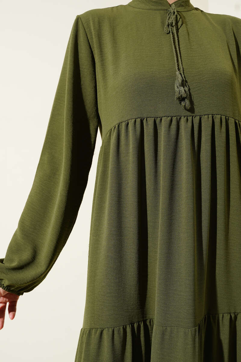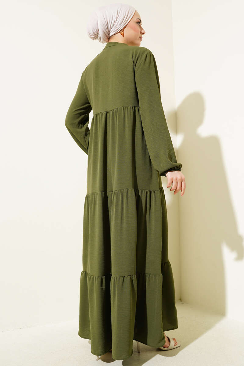 Gül Detaylı Pelerinli Abiye Elbise Haki