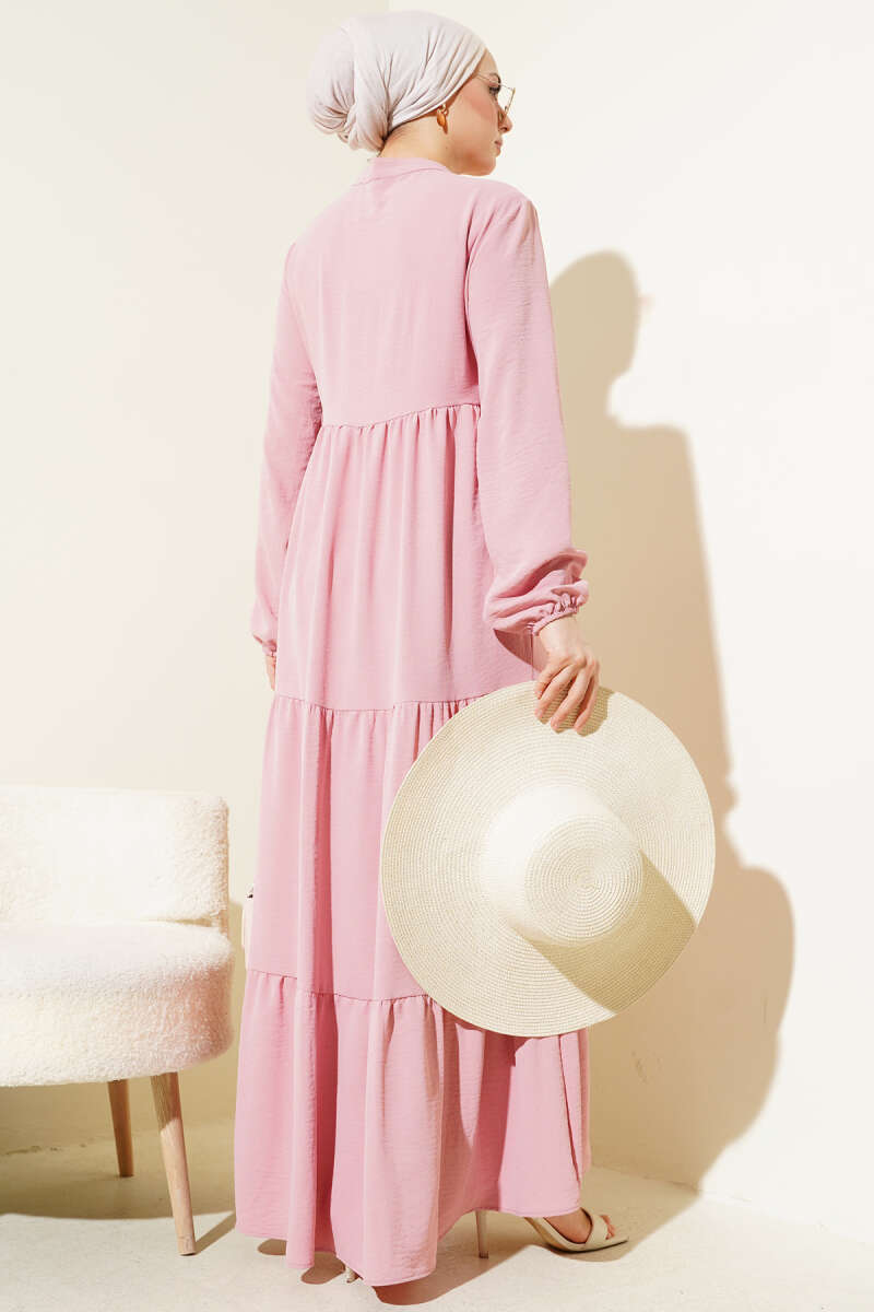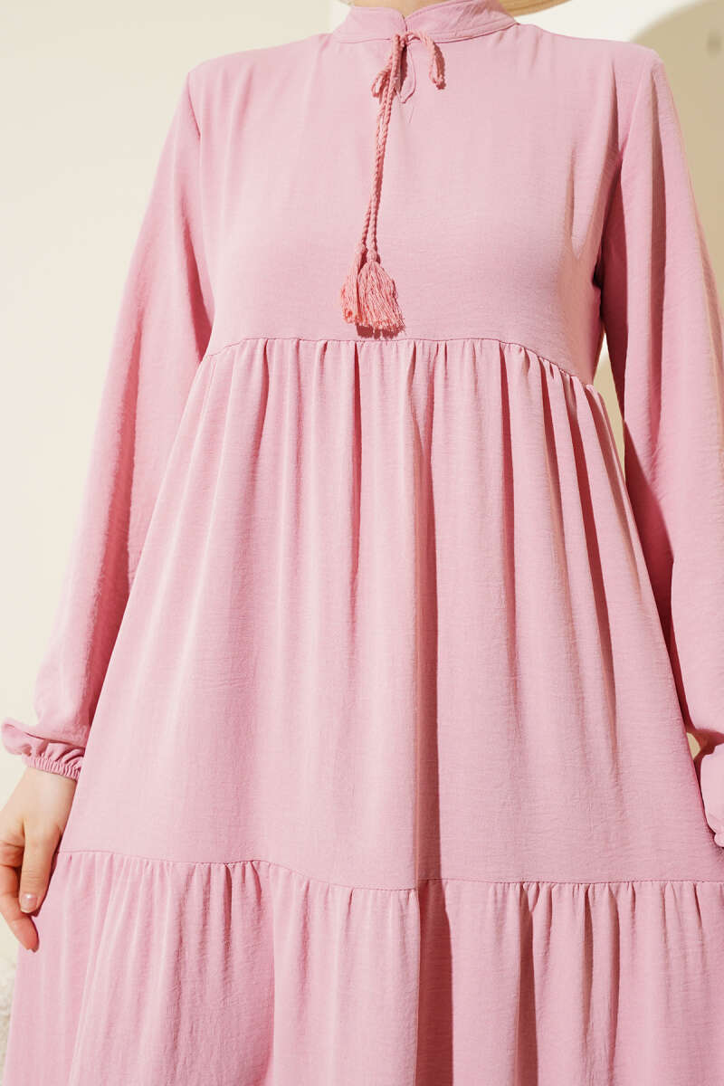 Pelerin Detaylı Pileli Triko Elbise Kahve