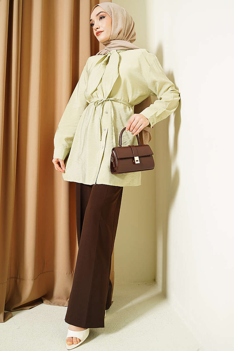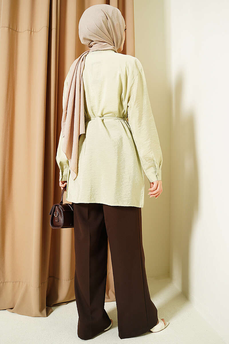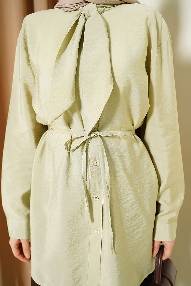 Çift Yaka İp Kuşaklı Gömlek Fıstık Yeşili
