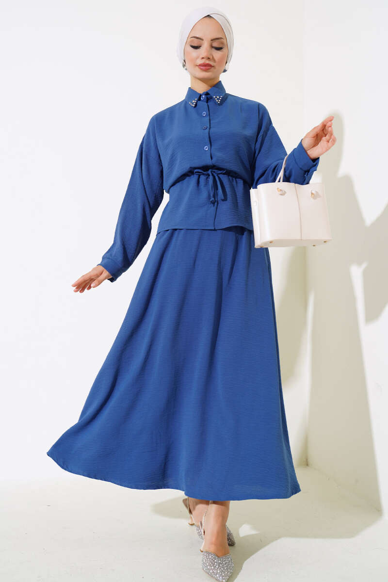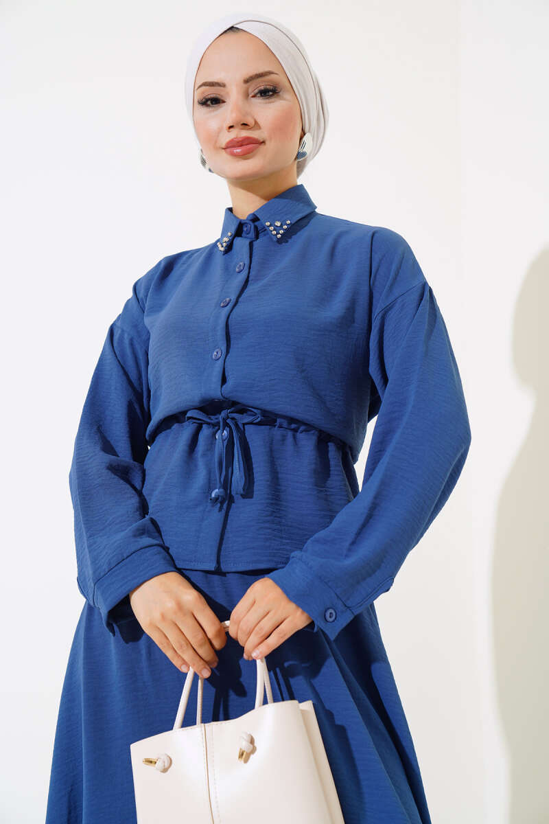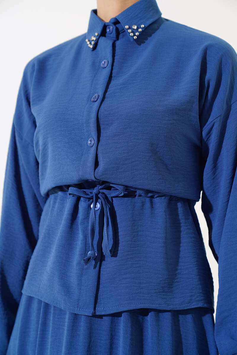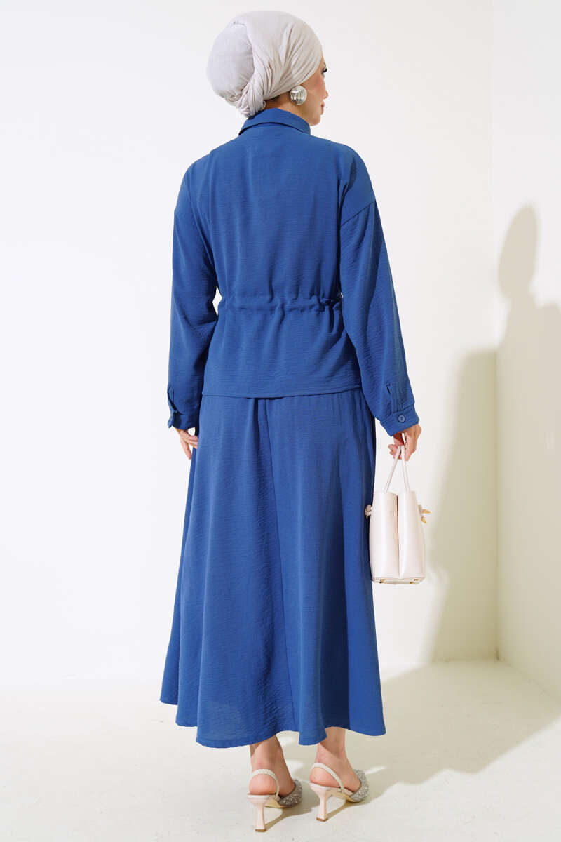 Yan Kemerli Düğmeli İkili Takım Mavi