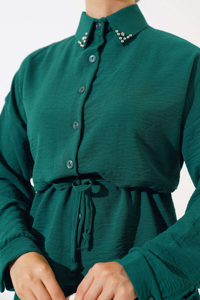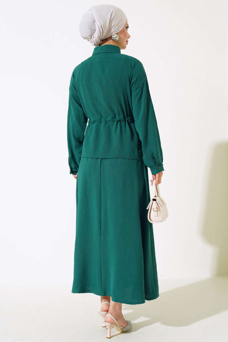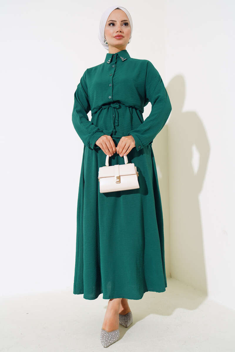 Yakası Boncuklu Ayrobin Etekli İkili Takım Zümrüt
