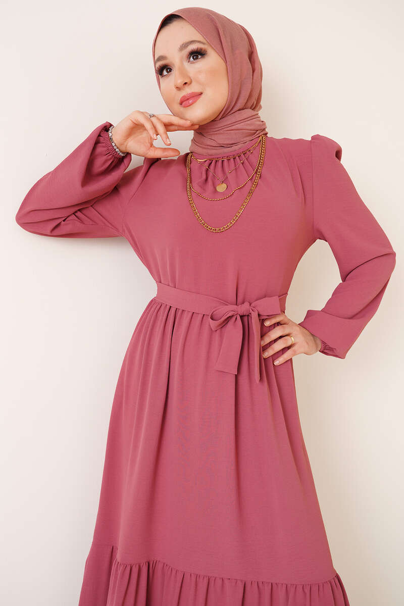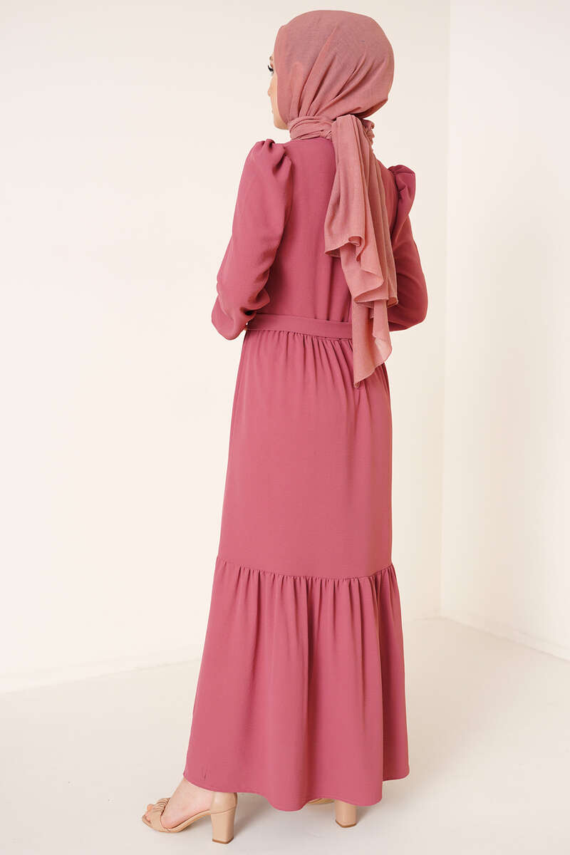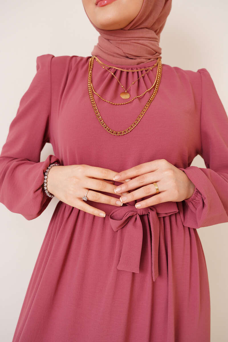 Yakası Büzgülü Ayrobin Elbise Gül Kurusu