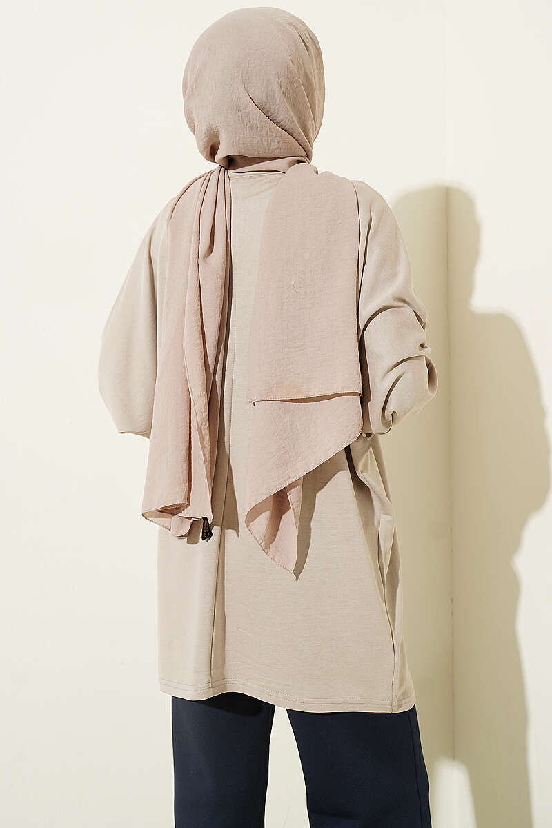 Yırtmaç Detaylı Tensel Uzun Tunik Bej