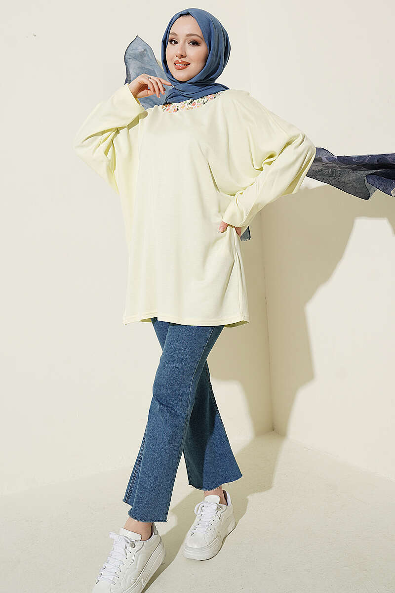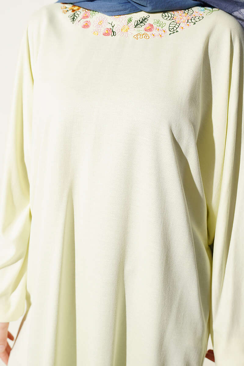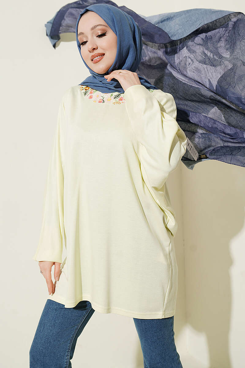 Yakası Çiçek Nakışlı Loyşa Tunik Sarı