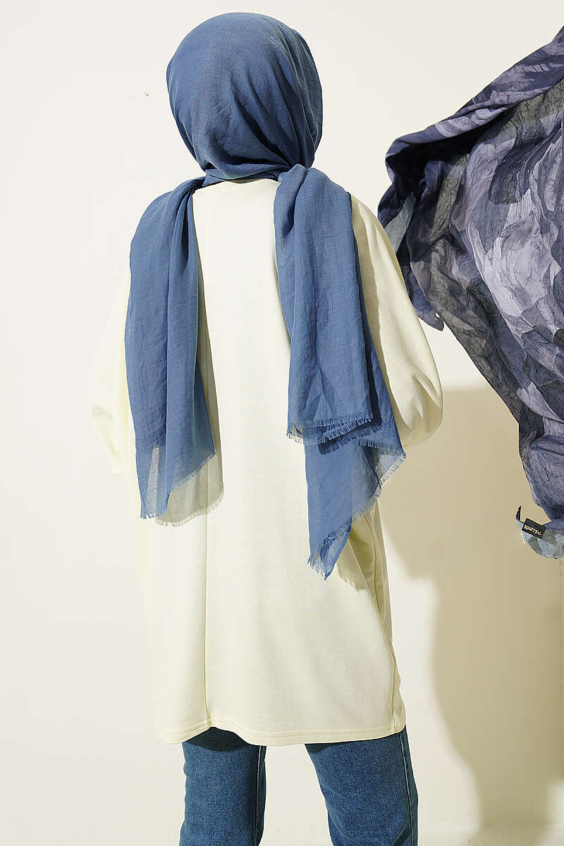 Bu şık loyşa tunik, bisiklet yakasını çevreleyen rengarenk çiçek nakışları ile tasarıma canlı ve feminen bir dokunuş katar. Rahatlığı ön plana çıkaran dökümlü kesimi ve salaş formu, hareket özgürlüğü sunarken aynı zamanda modern bir siluet oluşturur. Tasarımın en dikkat çekici özelliklerinden biri olan geniş yarasa kollar, tuniğe çabasız bir zarafet kazandırarak hem günlük kombinlerde hem de daha özel okazyonlarda tercih edilebilecek konforlu bir seçenek sunar.