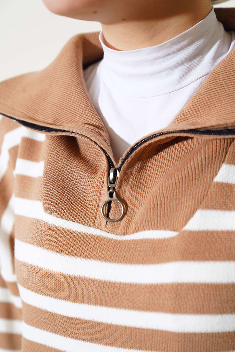 Çizgili Bolerolu Triko İkili Takım Kahverengi