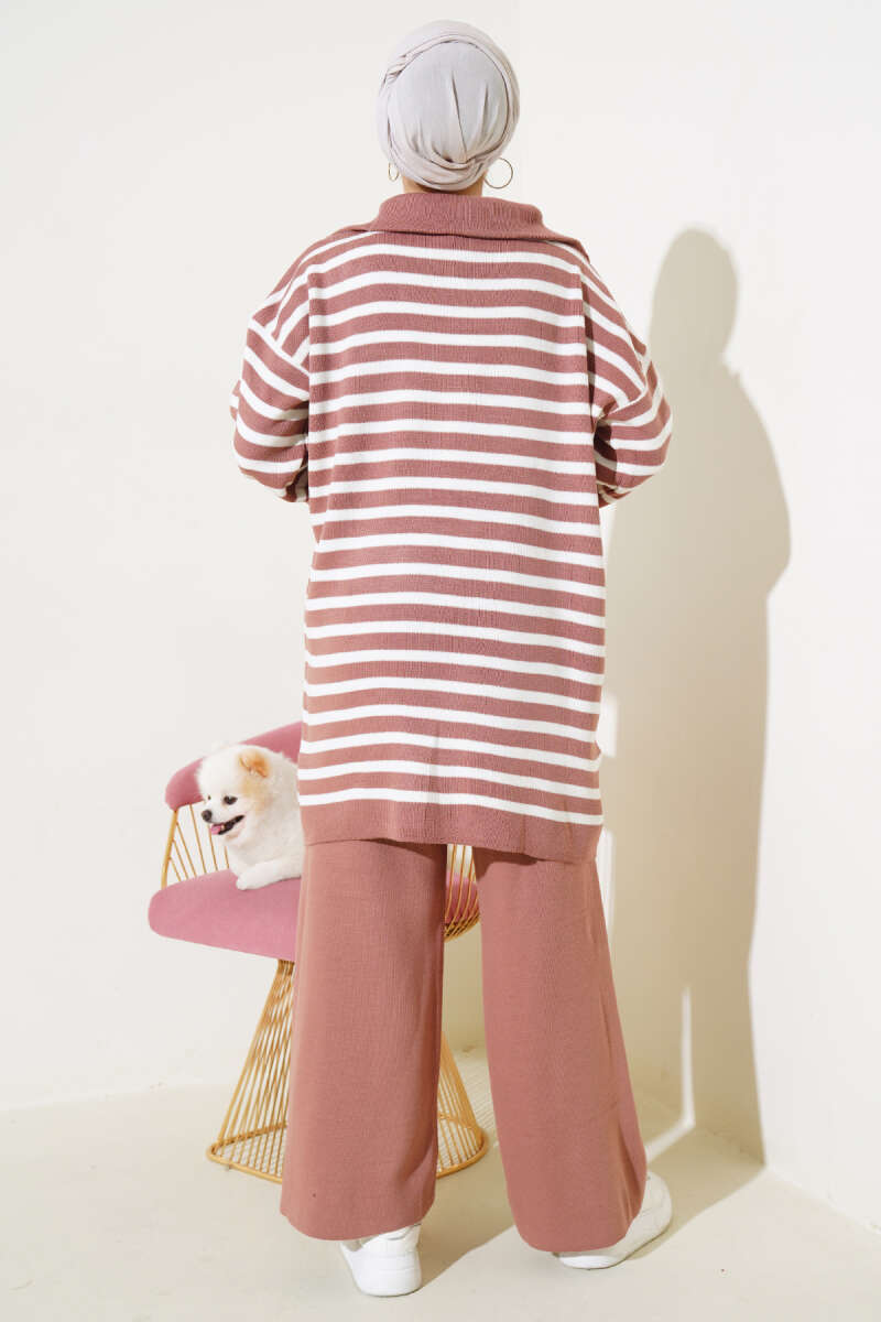 Dikiş Detaylı Basic Triko İkili Takım Vizon