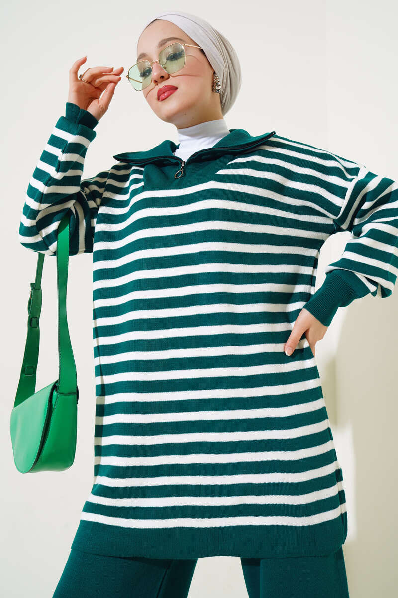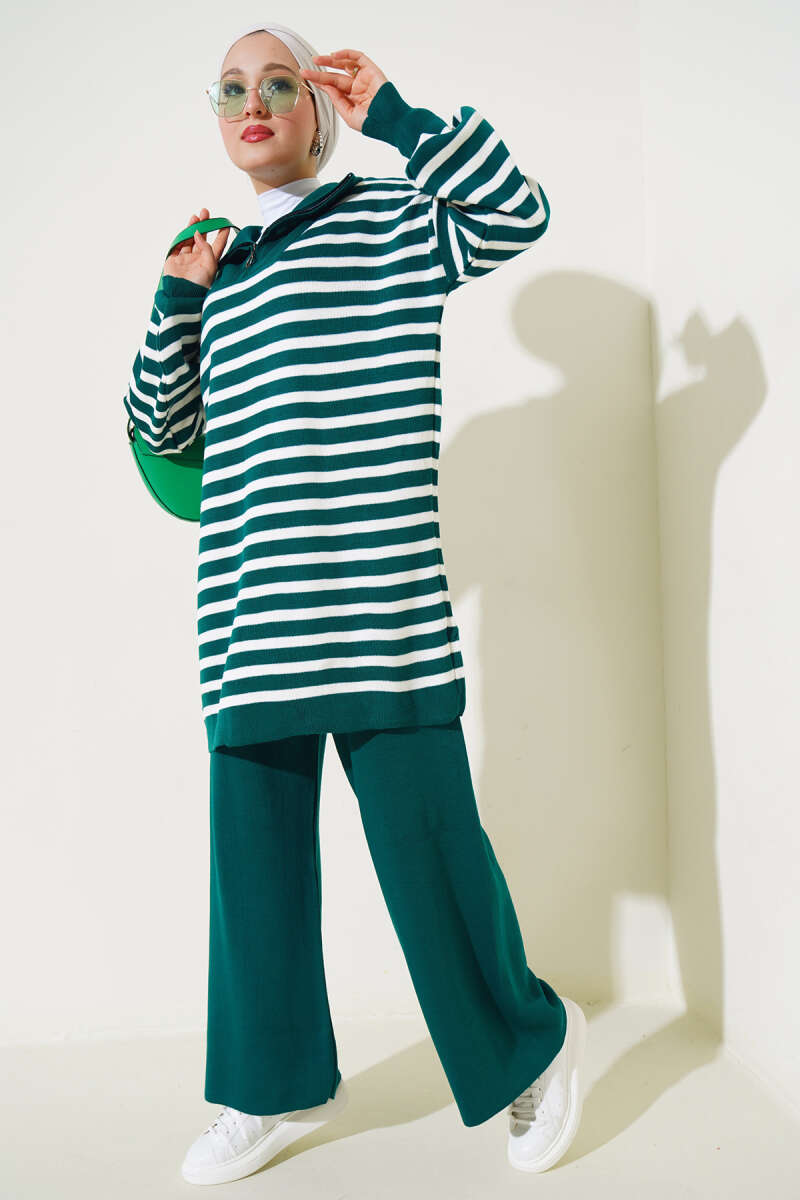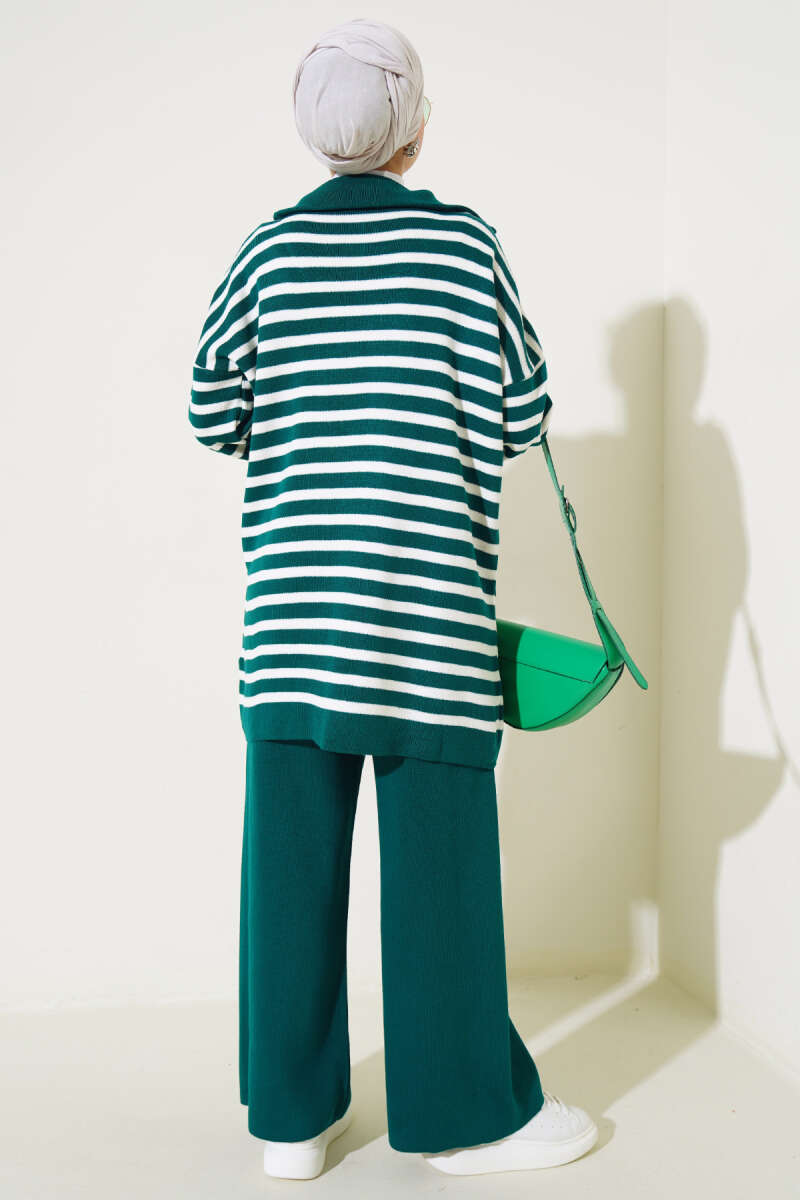 Balon Kol Balıkçı Yaka Triko İkili Takım Yağ Yeşili