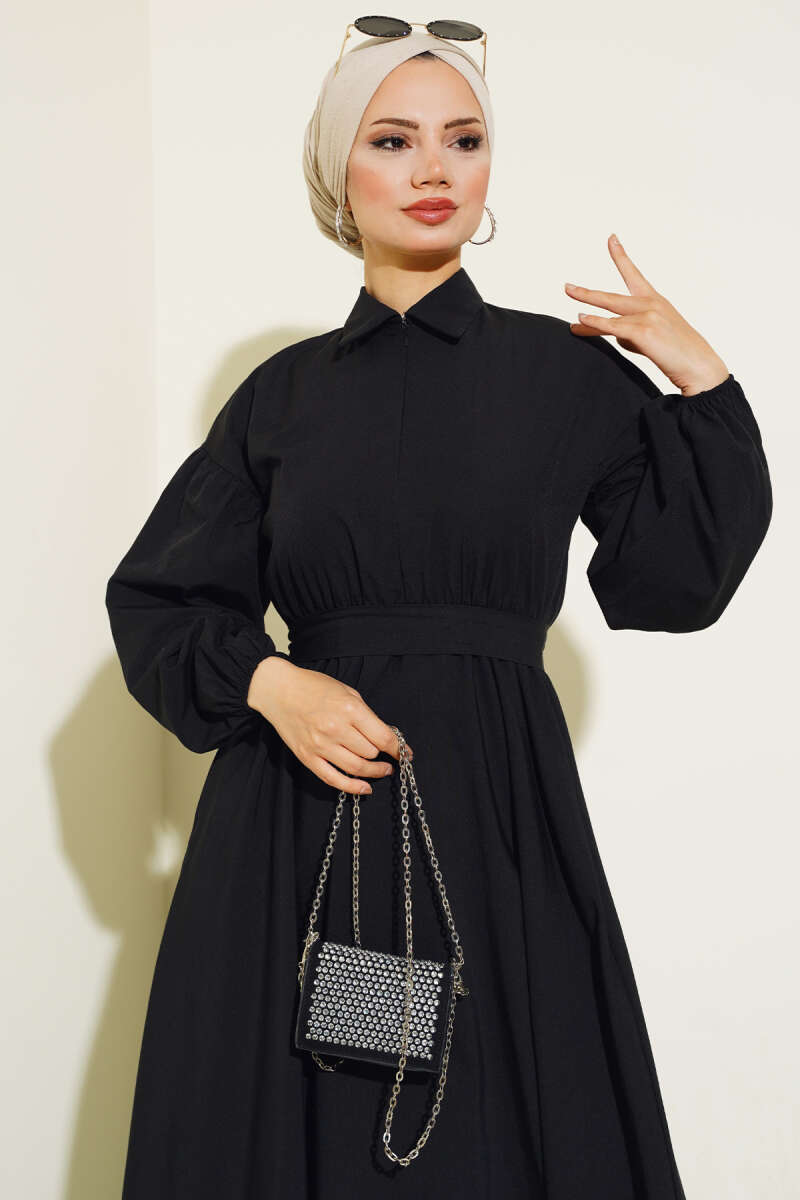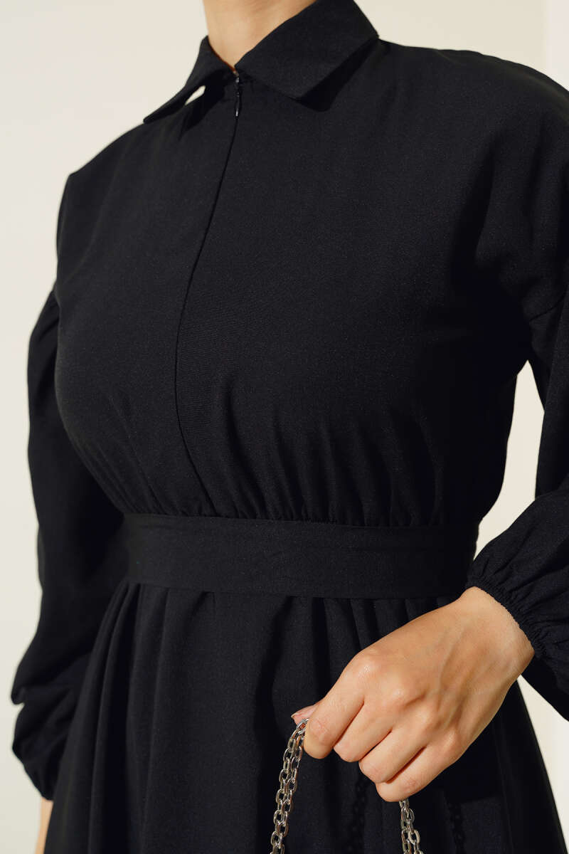 Yakası Fermuarlı Terikoton Elbise Siyah