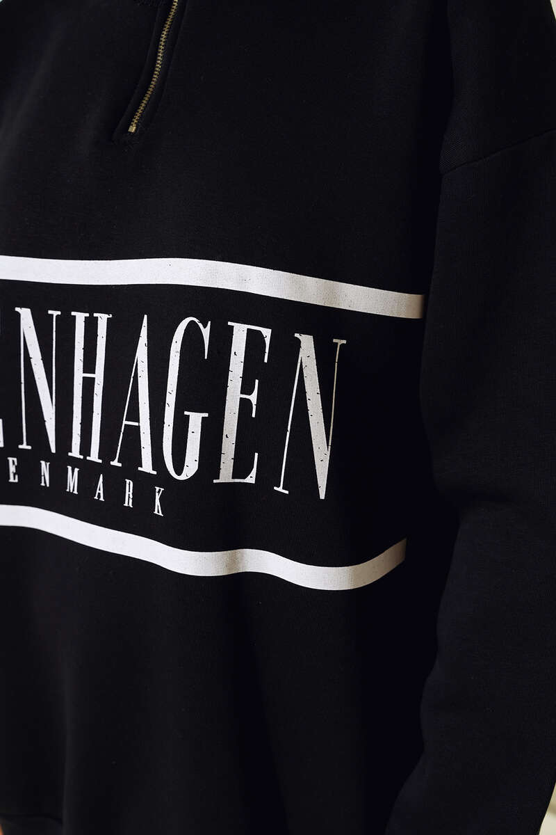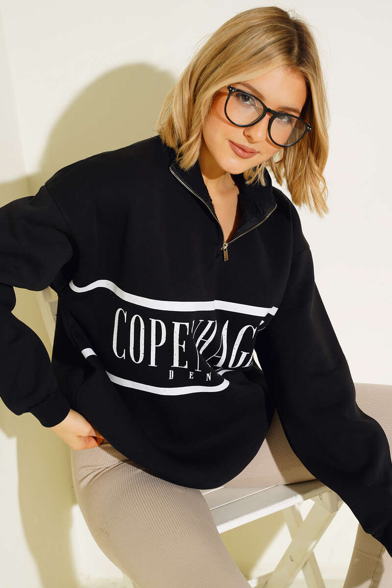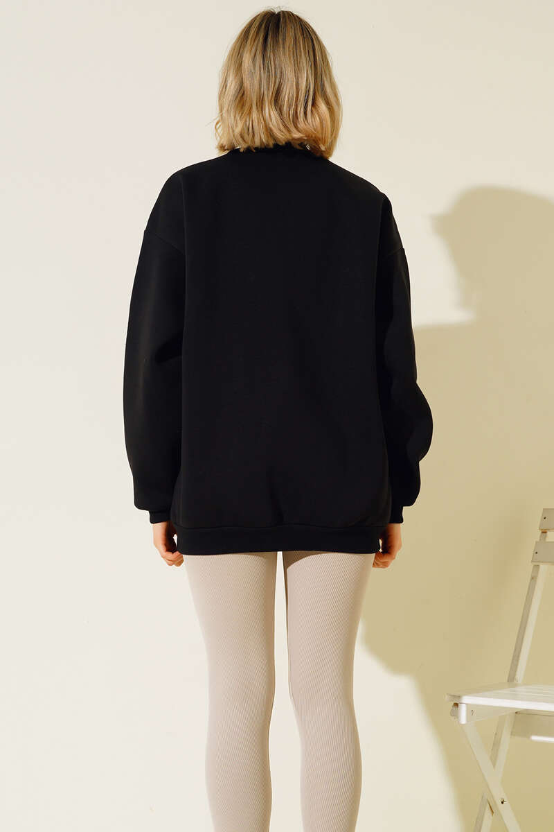 Yakası Fermuarlı Üç İplik Sweatshirt Siyah