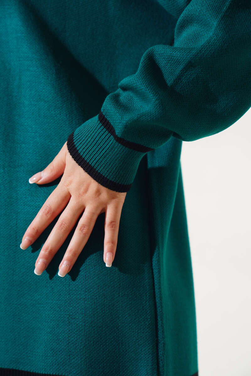 Balon Kol Balıkçı Yaka Triko İkili Takım Yağ Yeşili