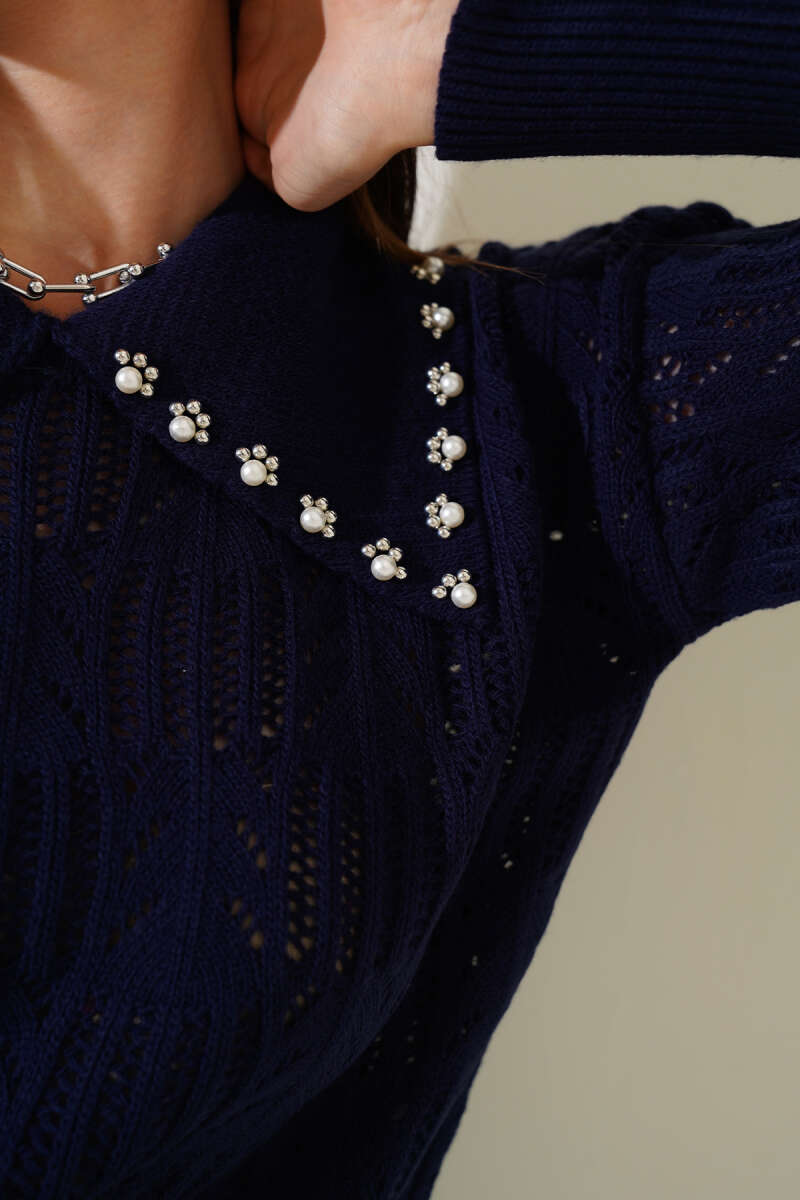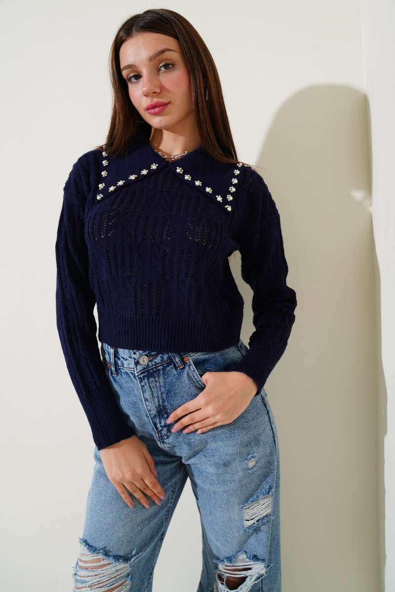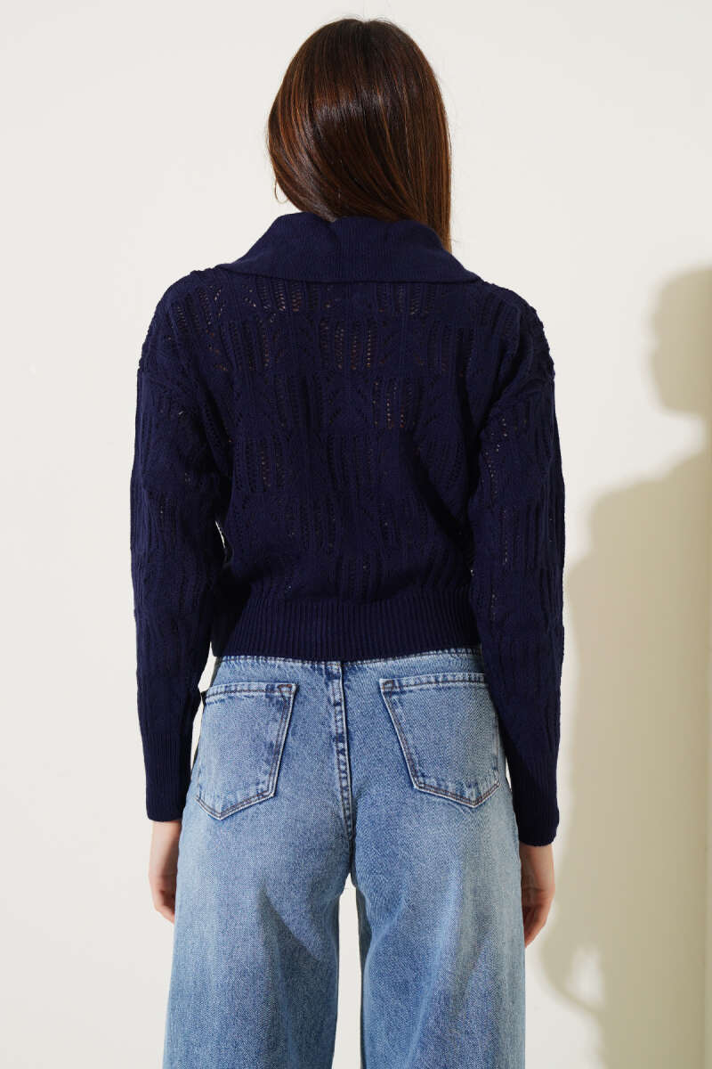 Bisiklet Yaka Sakal Detaylı Kazak Siyah