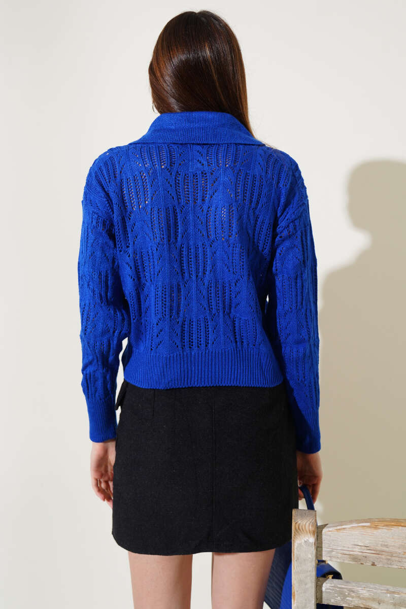 Uzun Kollu Yarım Fermuarlı Bluz Mavi