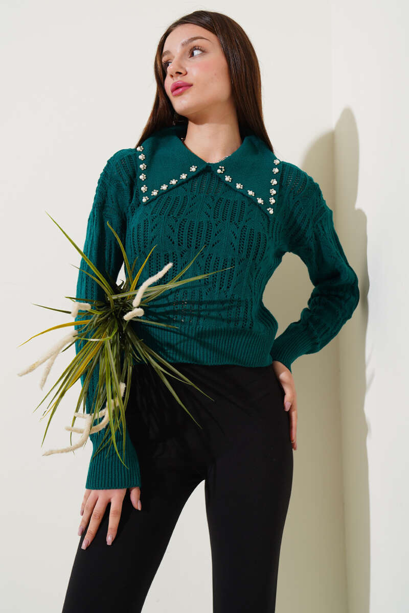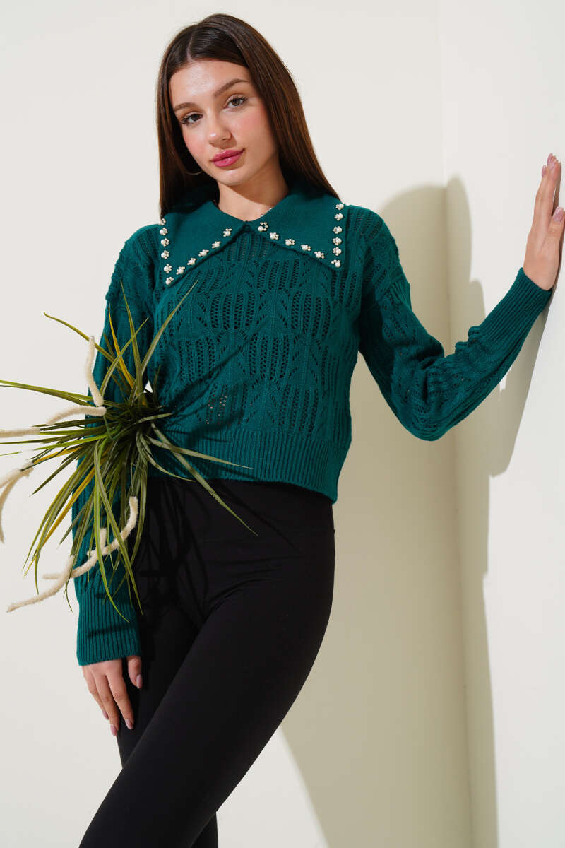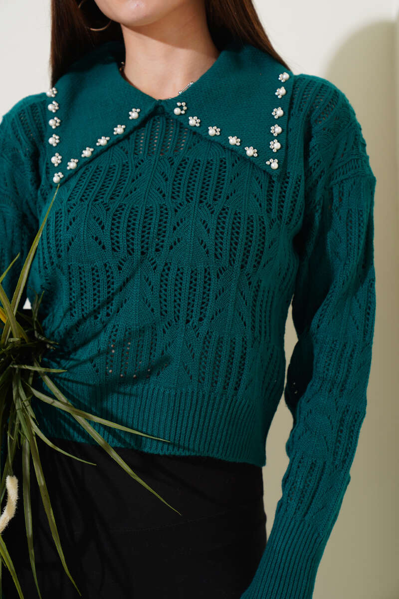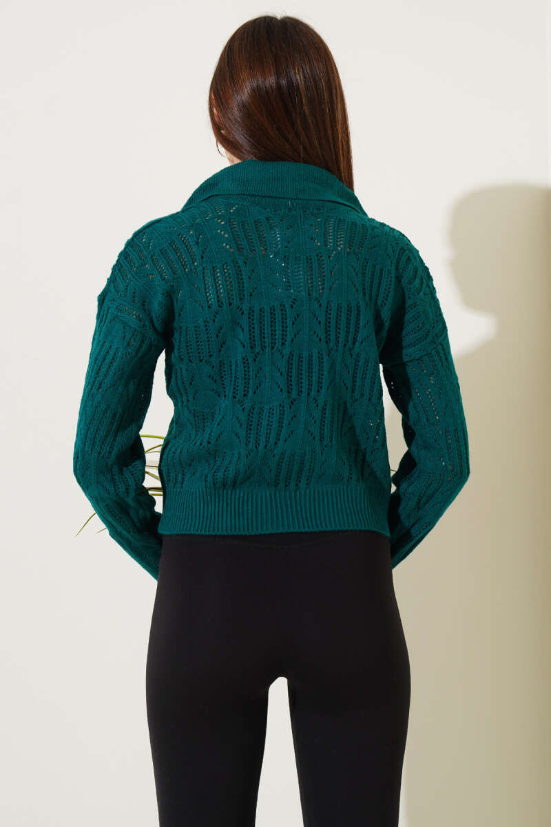 Örgü Detaylı Düğmeli Triko Hırka Saks