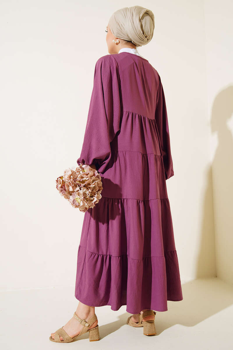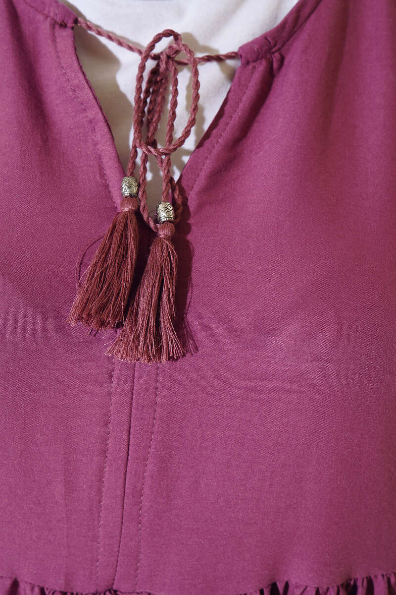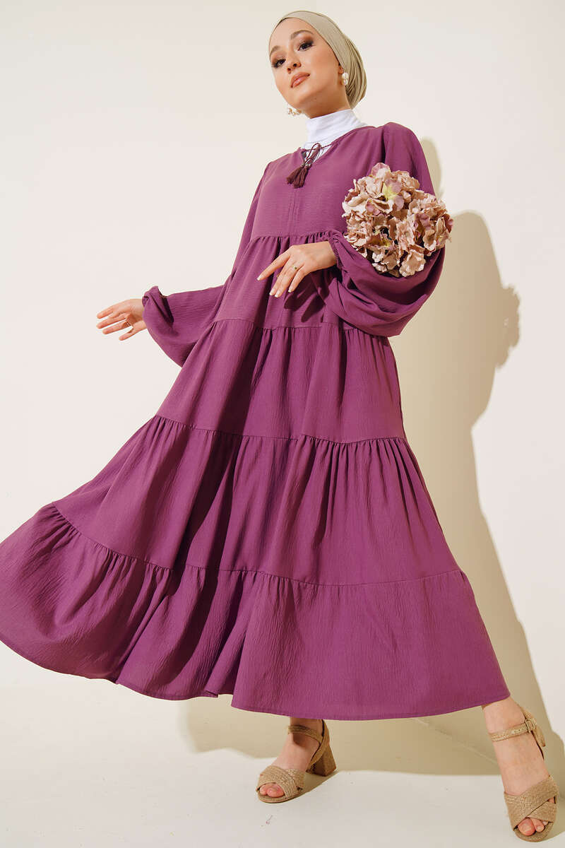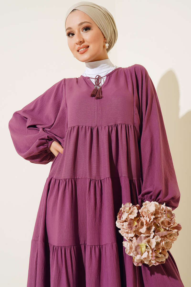 Yeni sezon elbisemiz harika tasarımıyla sizler için geldi. Elbisemiz balon koldur. Bilekleri lastiklidir. Kat kat modeldir. Yakası ip detaylıdır. İplerin ucunda püskül bulunmaktadır. Astarsızdır. Her ortamda rahatlıkla giyebilirsiniz. Oldukça rahattır. Farklı renk seçenekleri mevcuttur.
