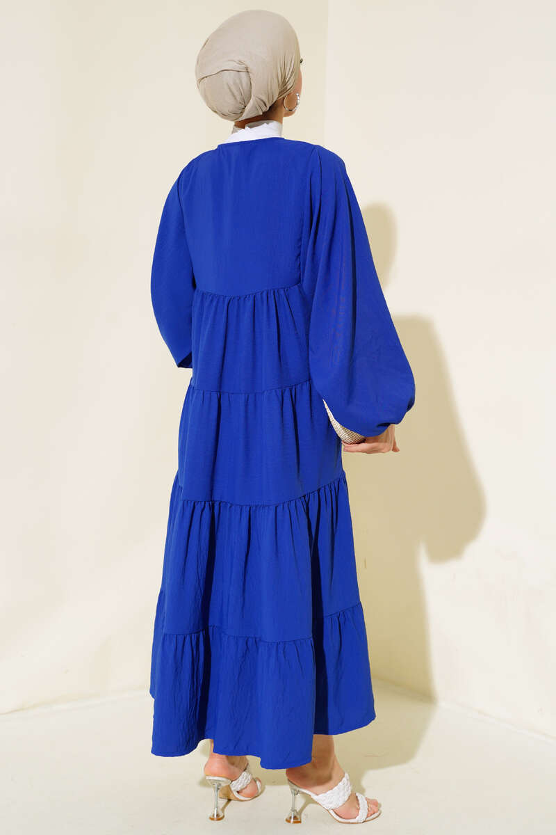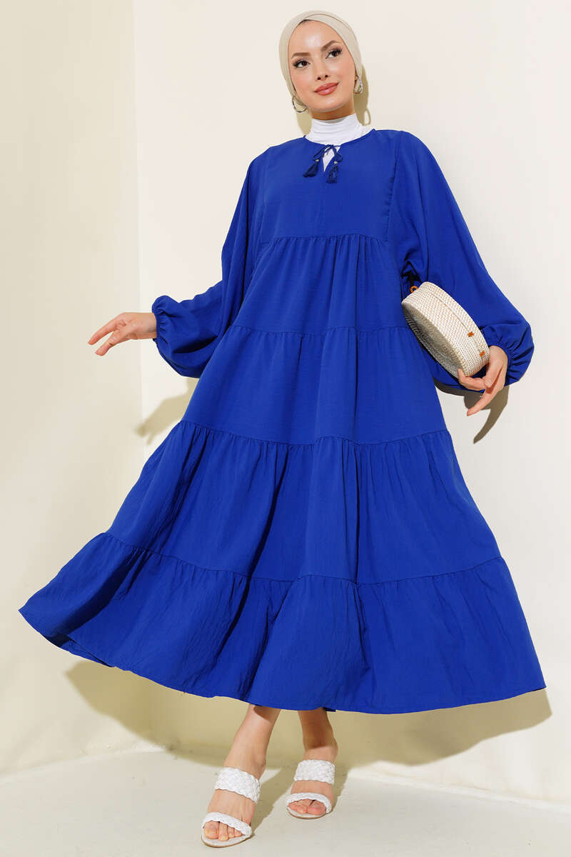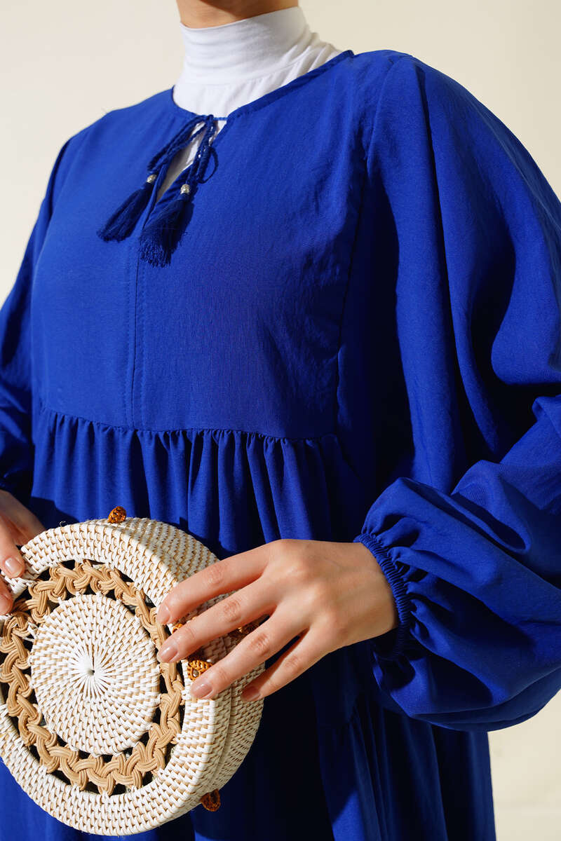 Yeni sezon elbisemiz harika tasarımıyla sizler için geldi. Elbisemiz balon koldur. Bilekleri lastiklidir. Kat kat modeldir. Yakası ip detaylıdır. İplerin ucunda püskül bulunmaktadır. Astarsızdır. Her ortamda rahatlıkla giyebilirsiniz. Oldukça rahattır. Farklı renk seçenekleri mevcuttur.
