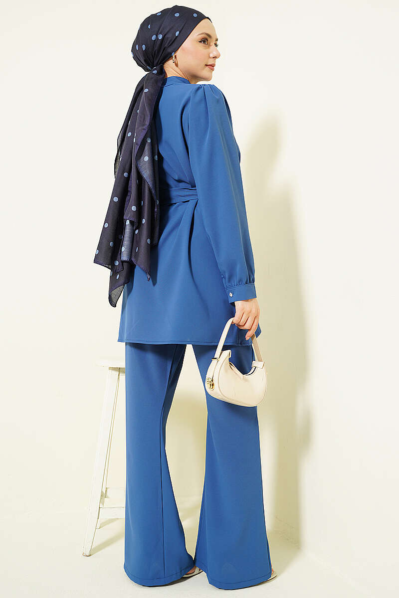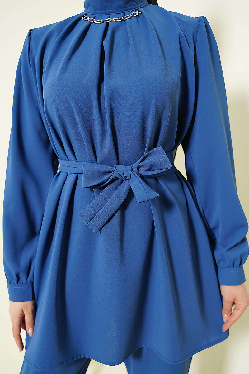 Yakası Kolyeli Tunik İkili Takım İndigo