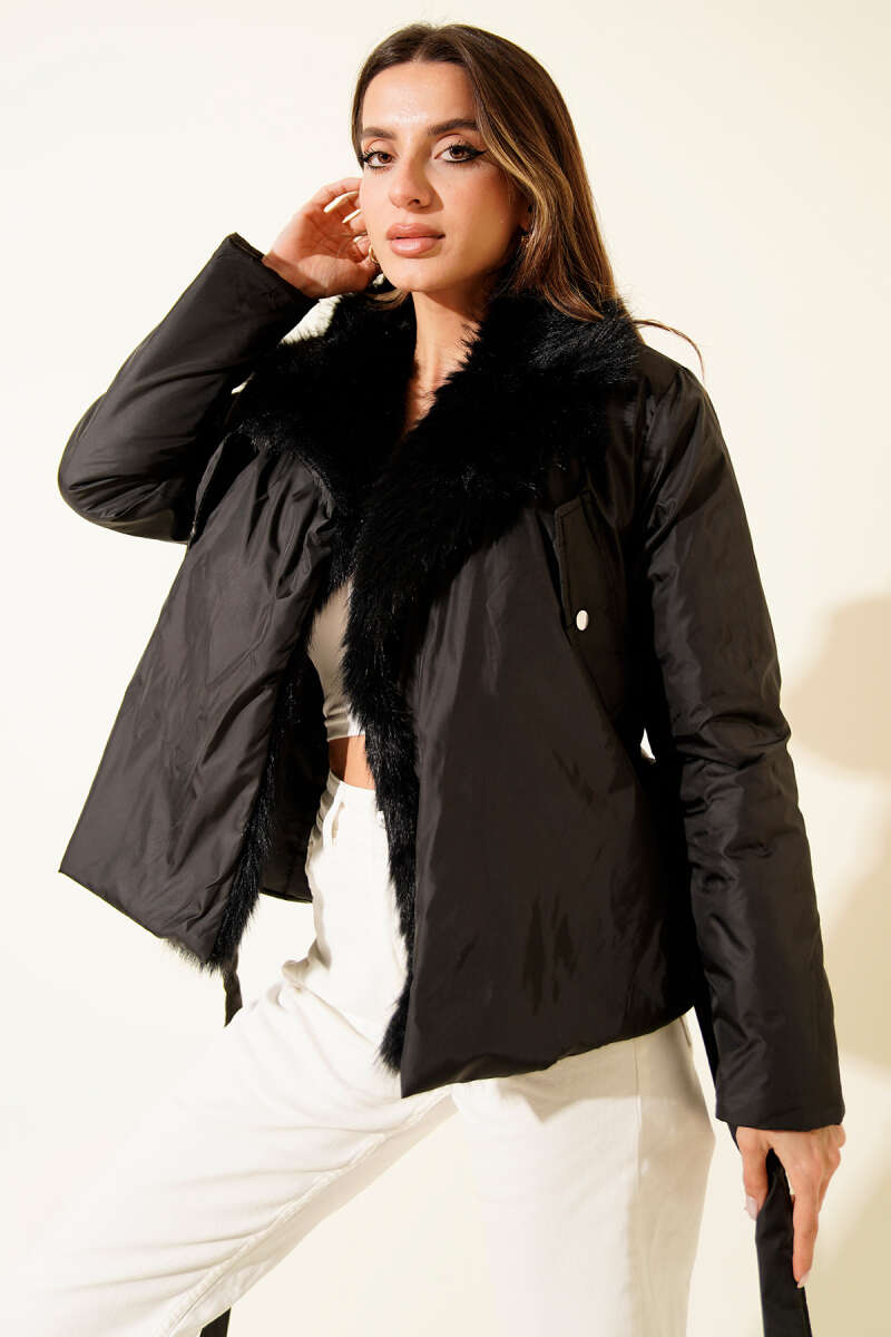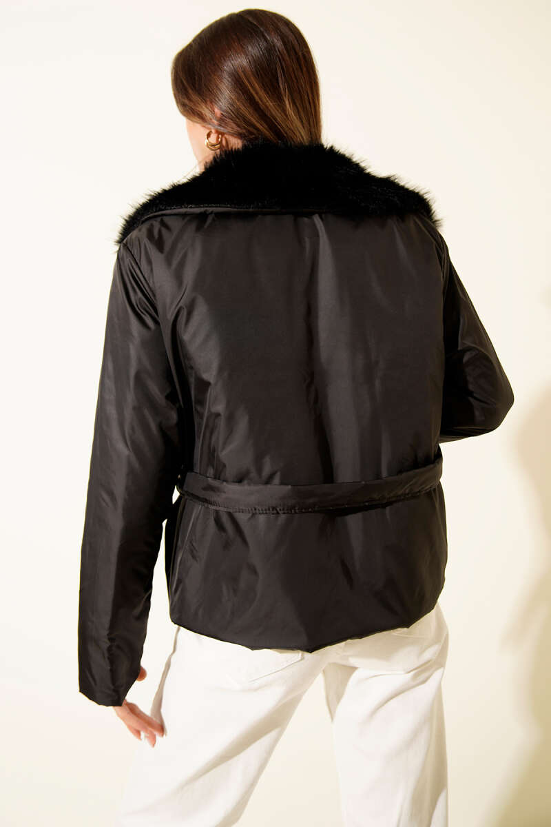 Balon Kol Kuşaklı Kısa Trençkot Siyah