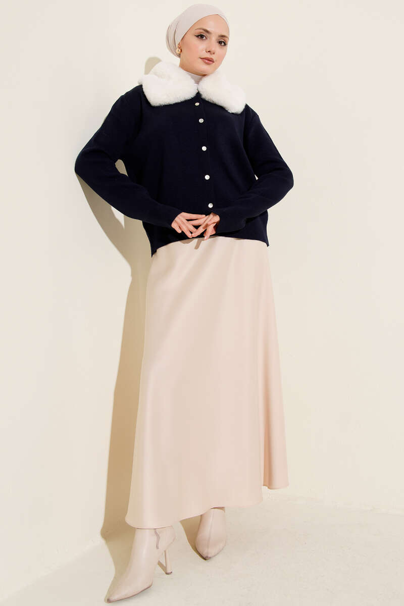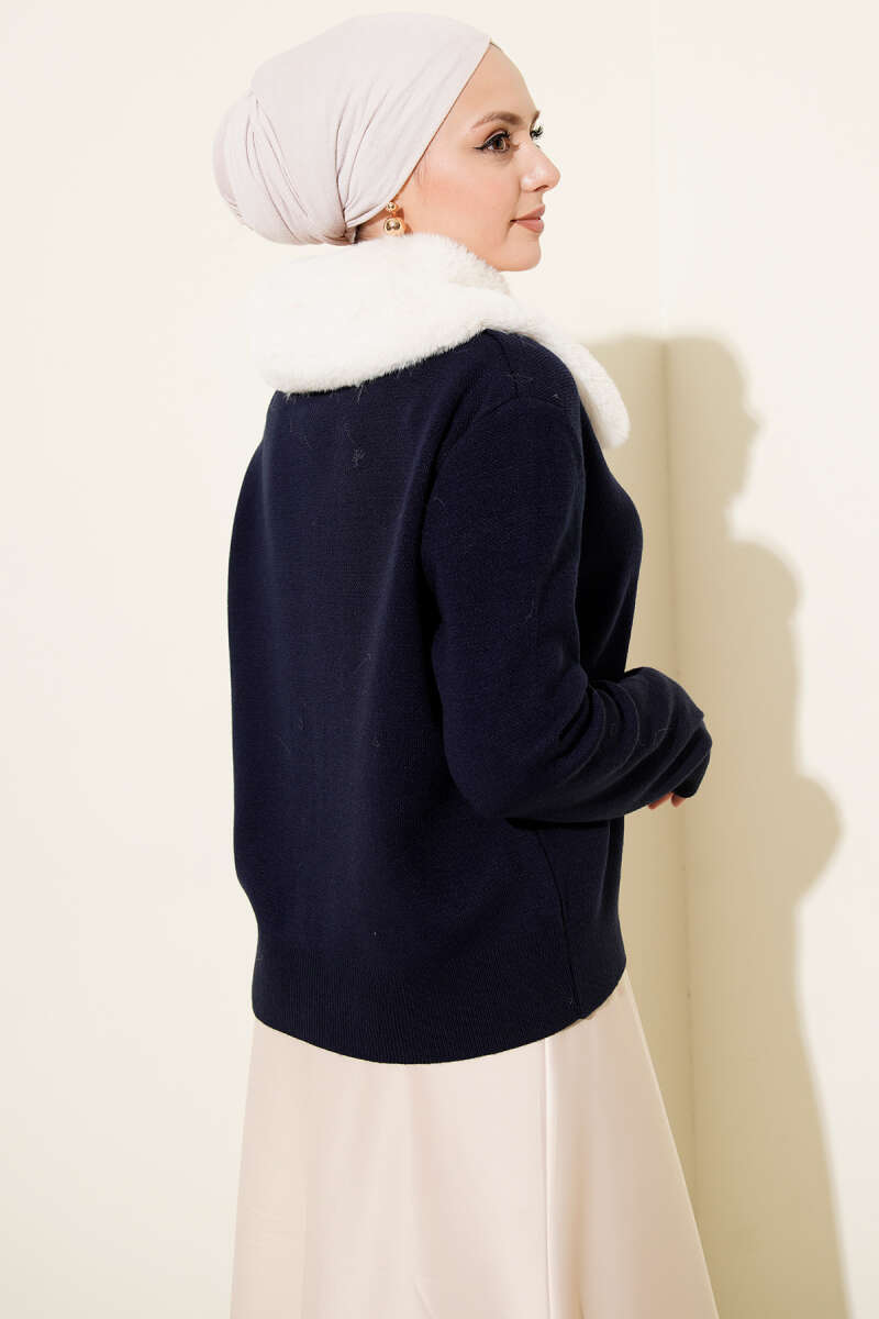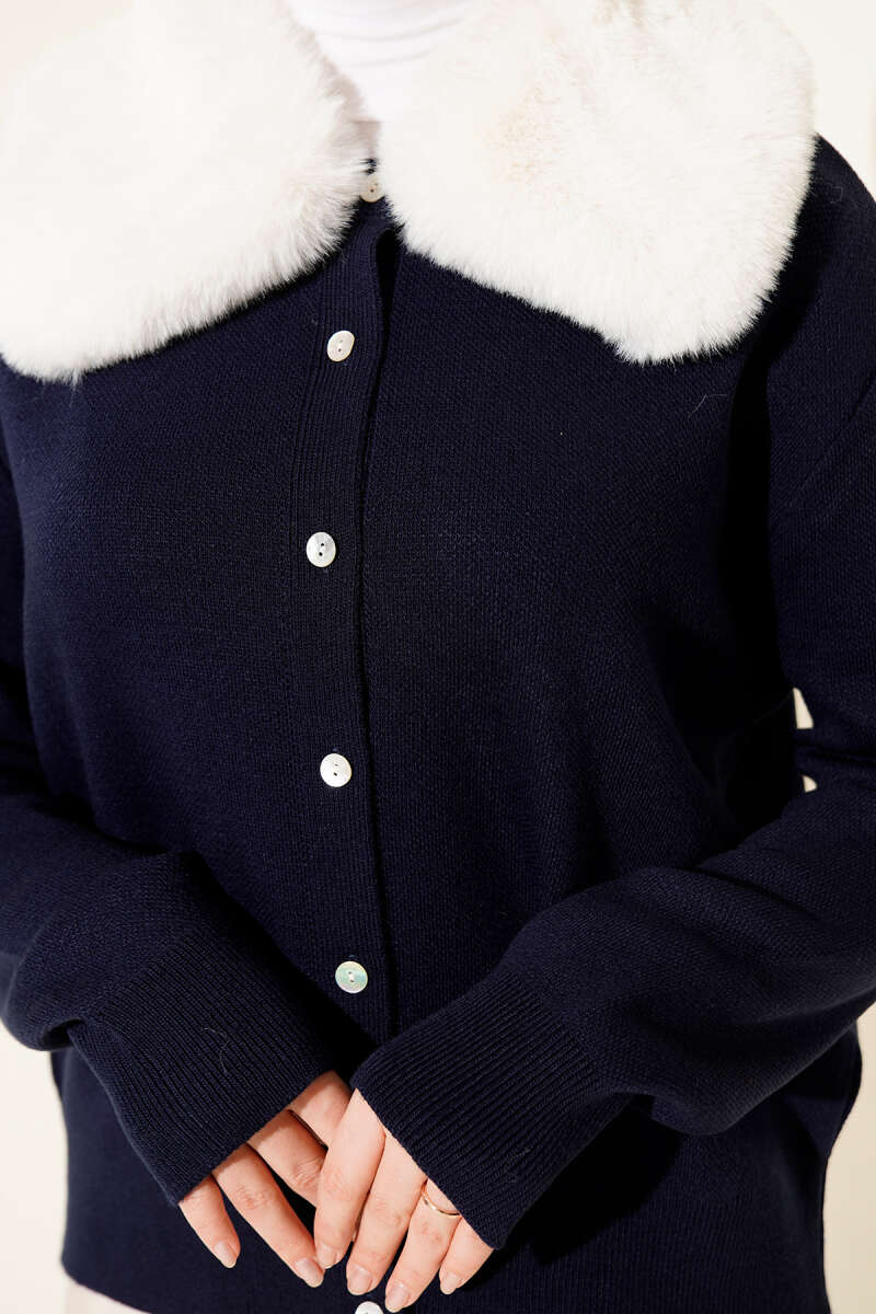 Yakası Kürklü Triko Kısa Hırka Kahve