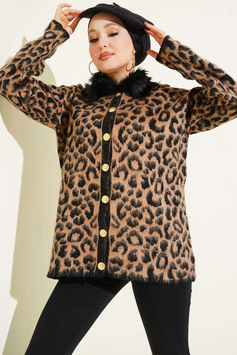 Leopar Garnili Kapşonlu İkili Takım Siyah
