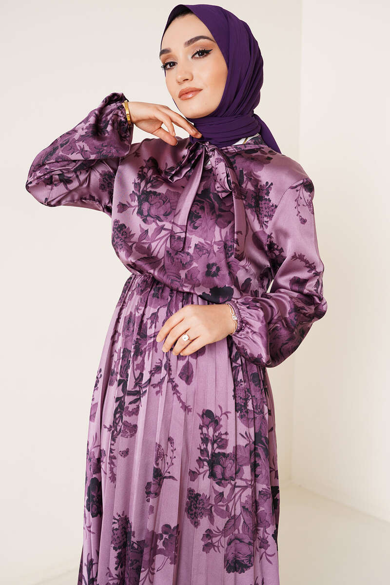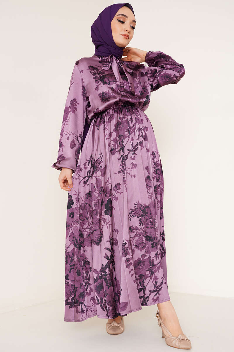 Yeni sezon elbisemiz harika tasarımıyla sizler için geldi. Elbisemiz satendir. Yakası kendinden kuşaklıdır. Beli ve bilekleri lastiklidir. Pileli tasarıma sahiptir. Çiçek desenlidir. Oldukça şıktır. Her ortamda rahatlıkla giyebilirsiniz. Farklı renk seçenekleri mevcuttur.