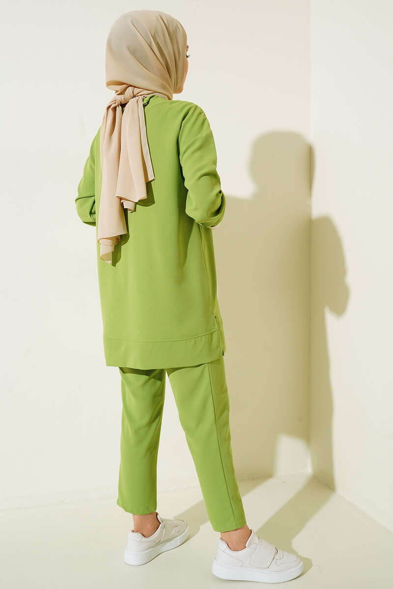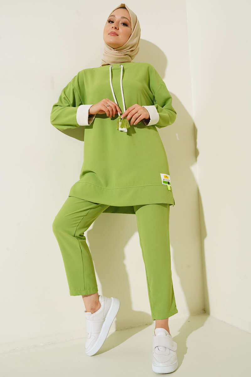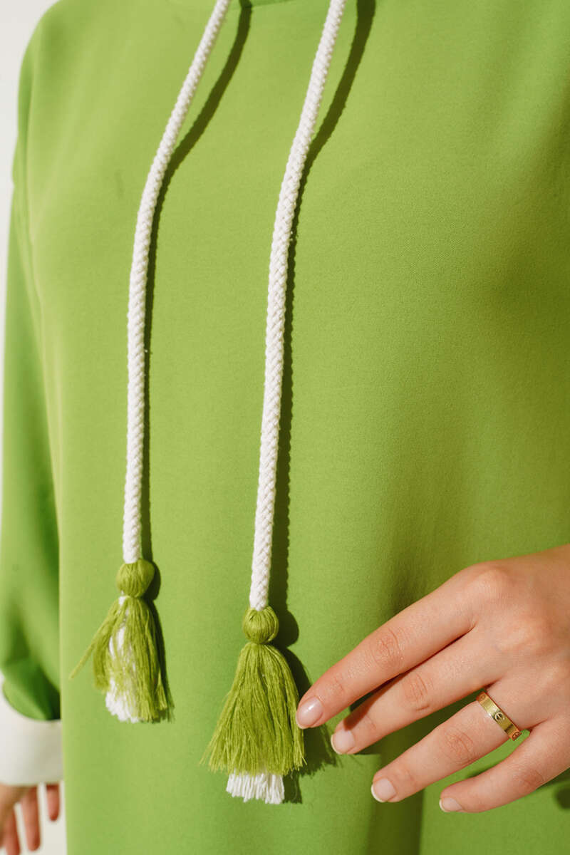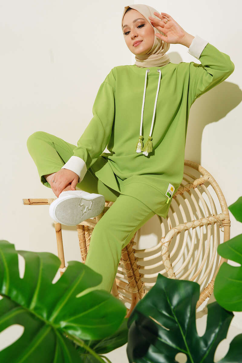 Yakası Püsküllü İp Detaylı İkili Takım Fıstık Yeşil