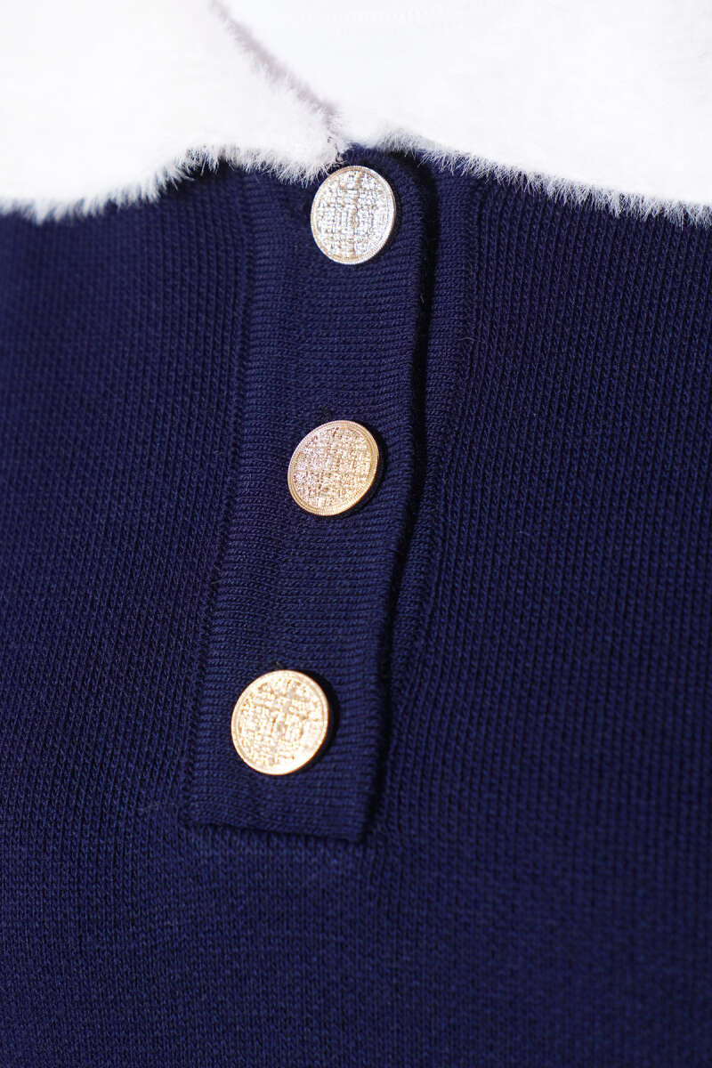 Balon Kol Balıkçı Yaka Triko İkili Takım Lacivert