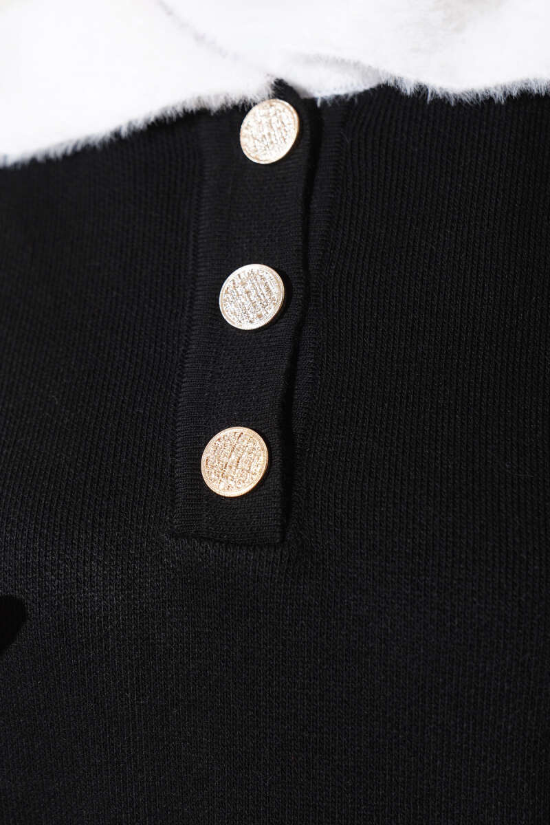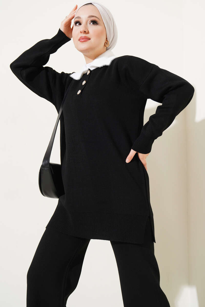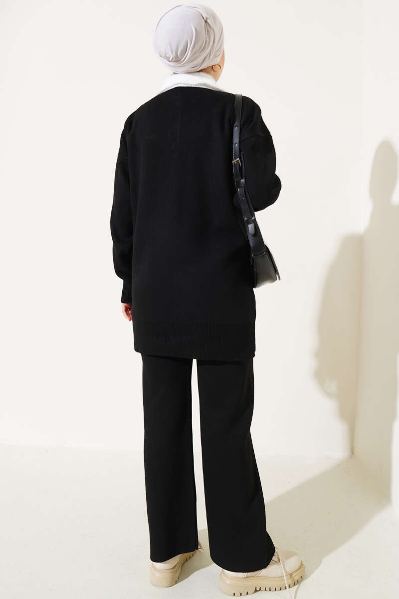Balon Kol Balıkçı Yaka Triko İkili Takım Siyah