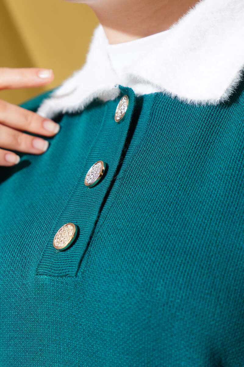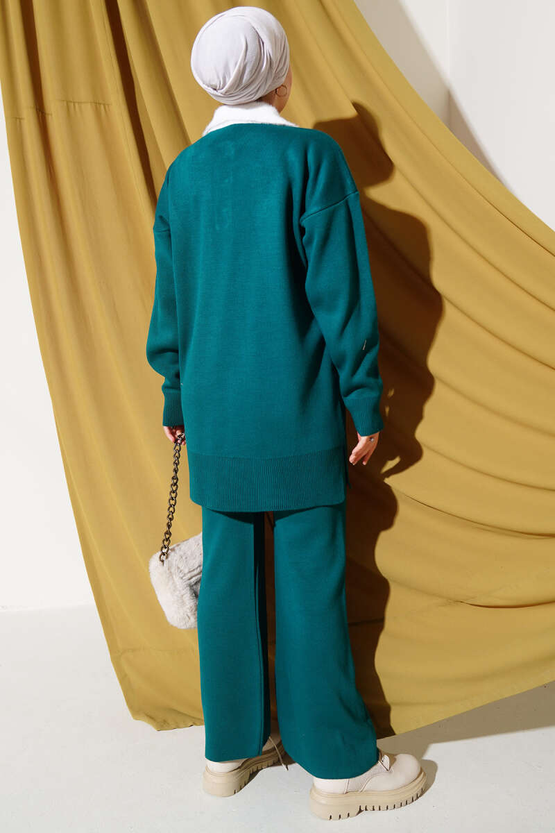 Yakası Sakallı Triko İkili Takım Zümrüt