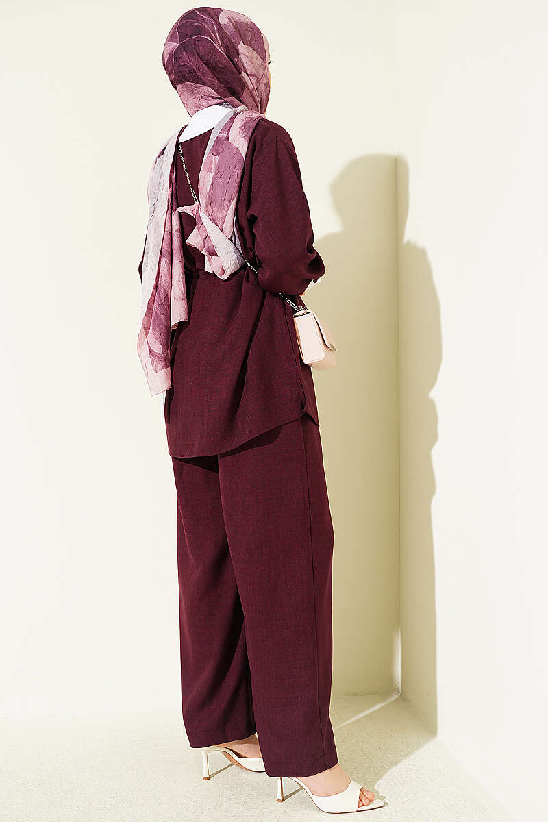 Yanları İp Detaylı İkili Takım Bordo