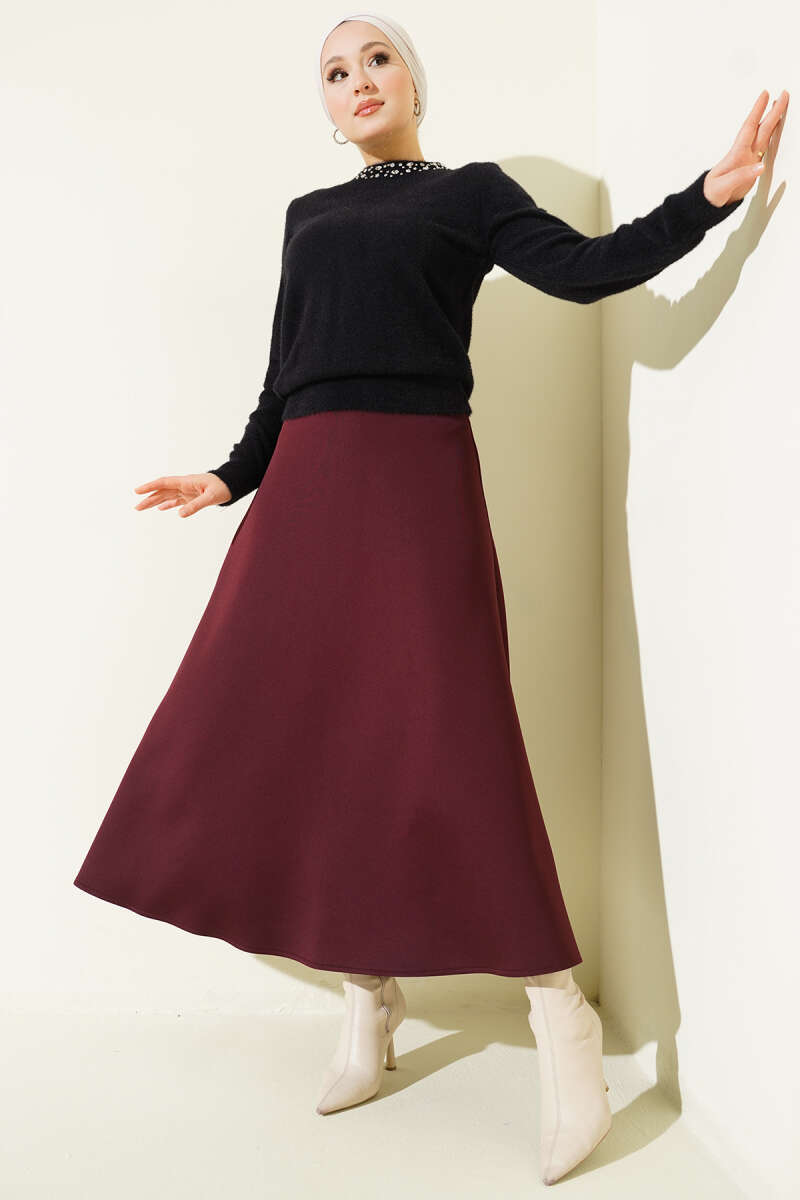Beli Lastikli Saten Kloş Etek Kırmızı