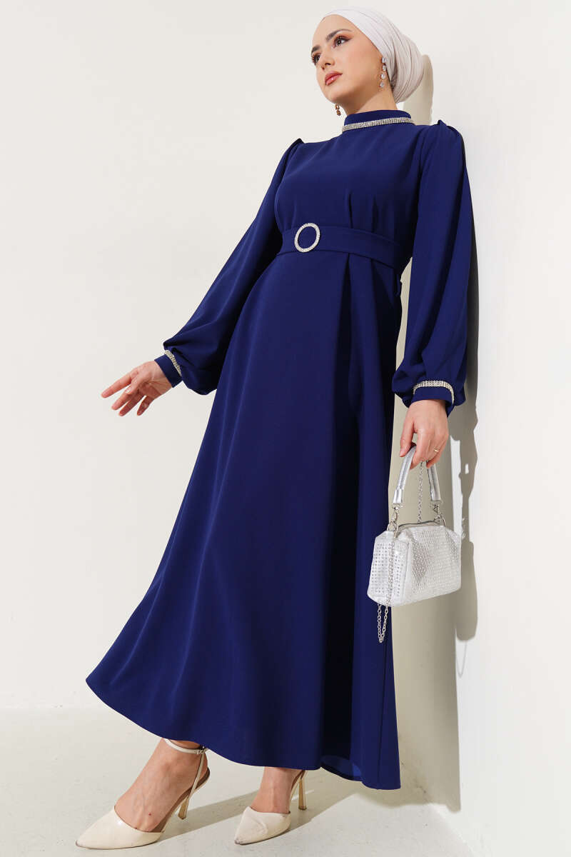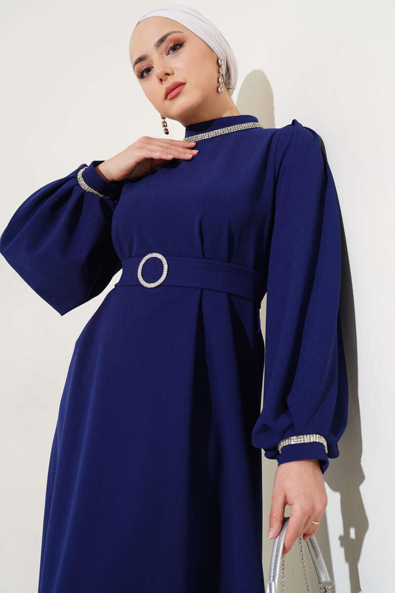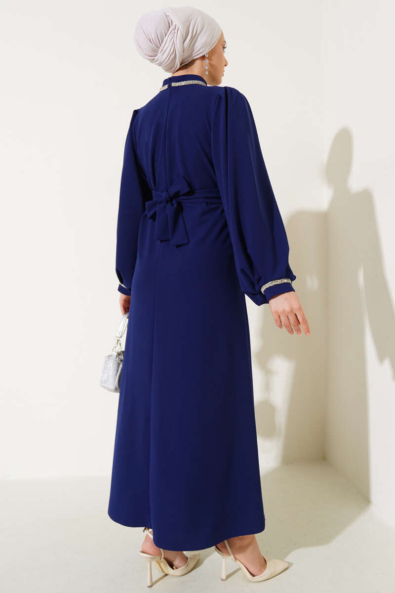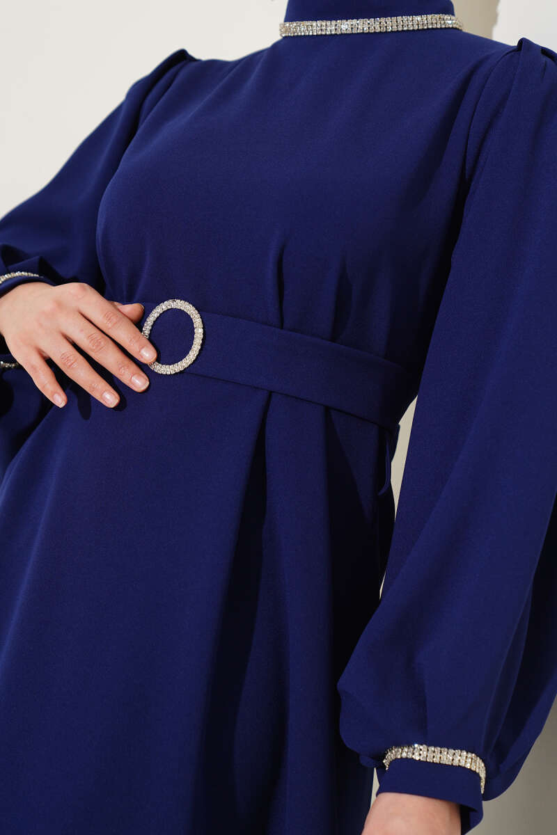 Yarım Yaka Fermuarlı Scuba Elbise Lacivert