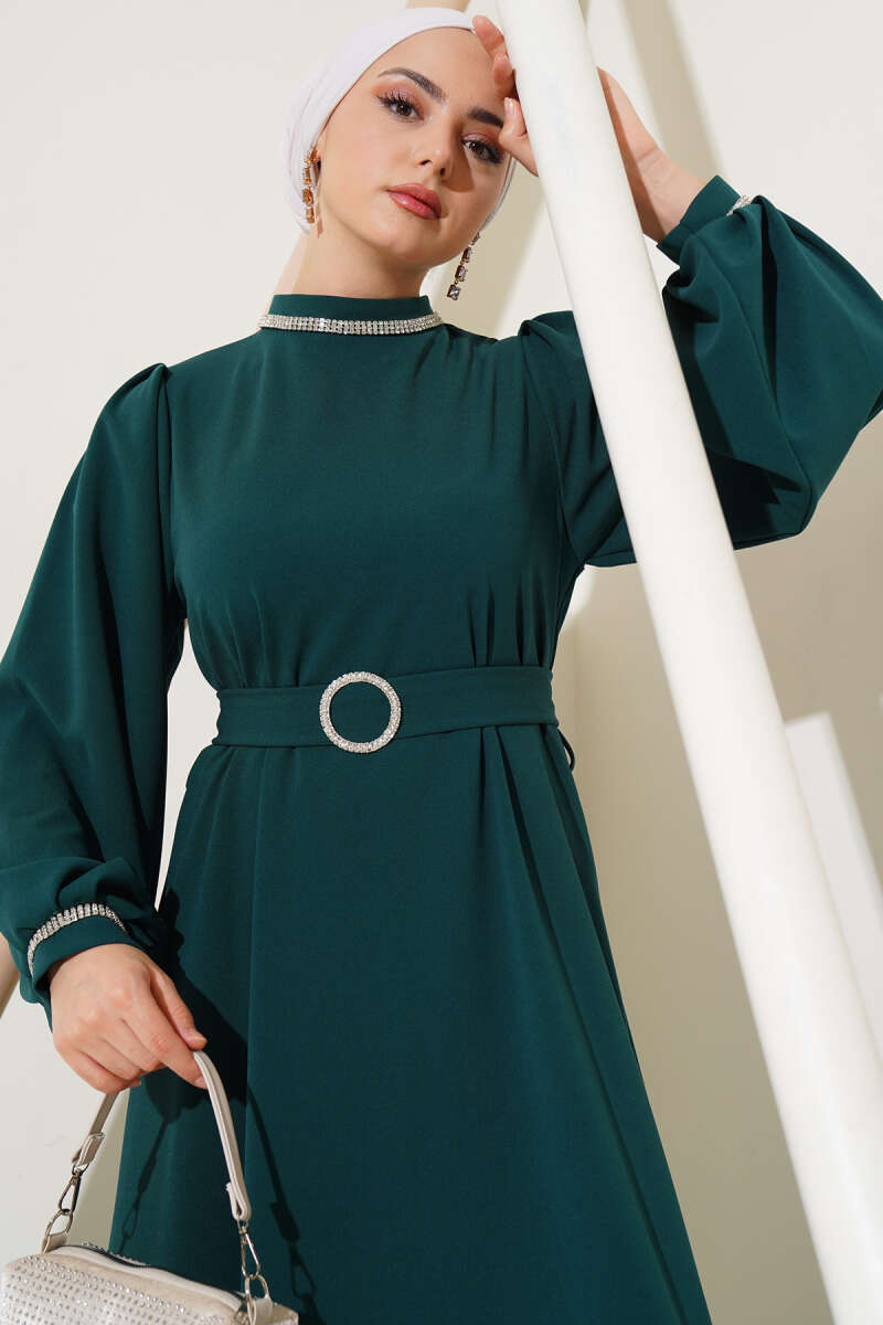 Yarım Yaka Fermuarlı Scuba Elbise Haki