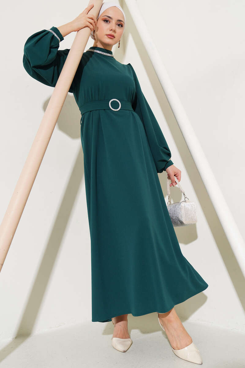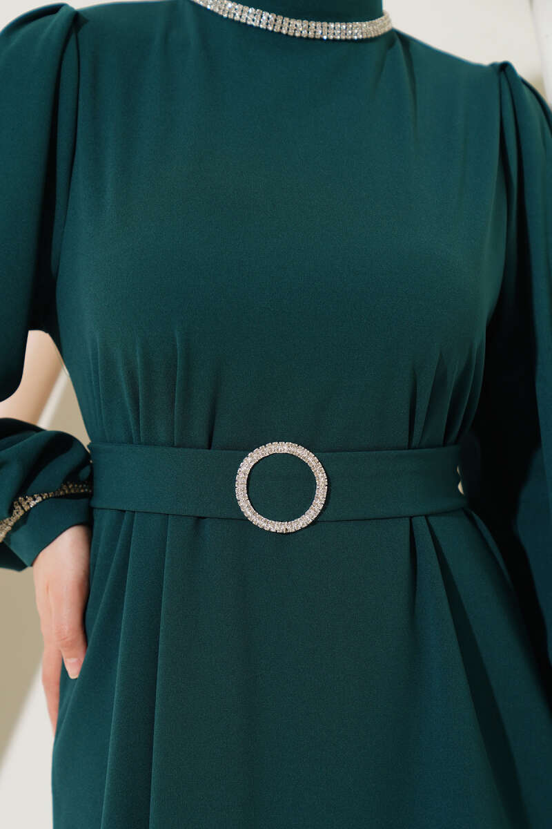 Pelerin Detaylı Pul Payet Abiye Elbise Haki