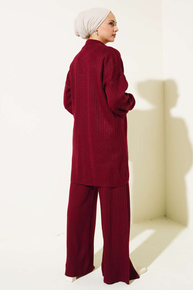 Taşlı Baklava Desen Triko İkili Takım Kahve