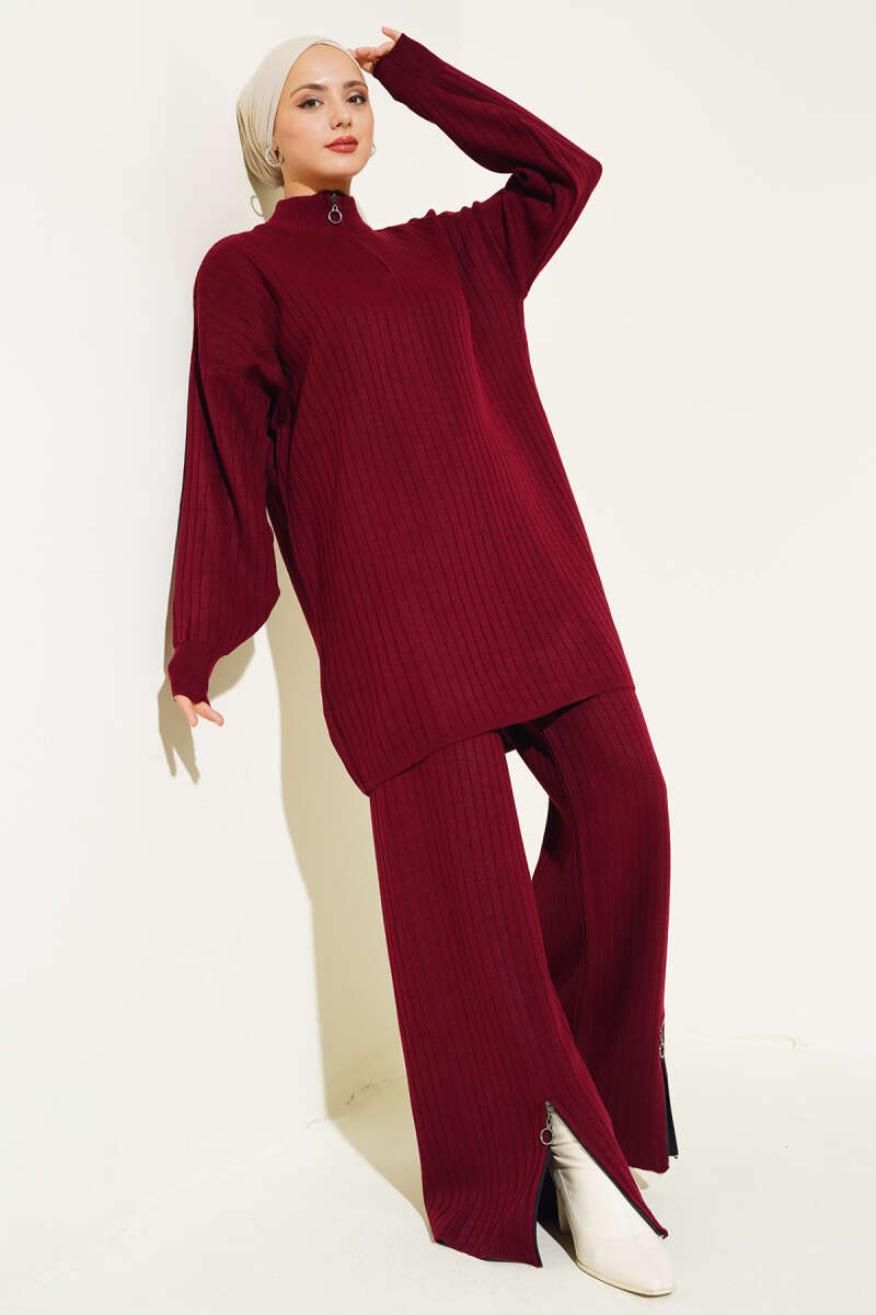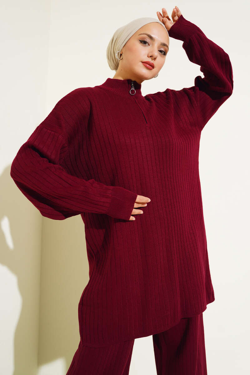Balon Kol Balıkçı Yaka Triko İkili Takım Taş