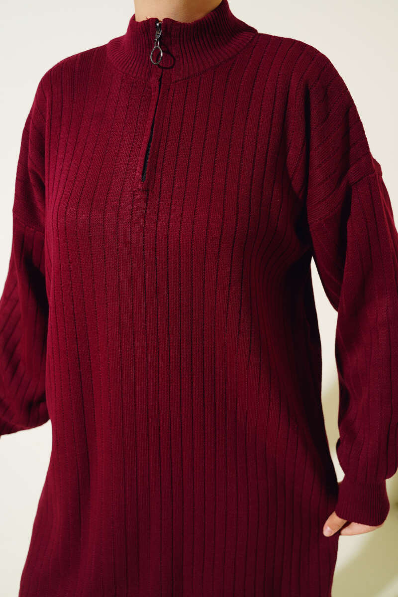 Bisiklet Yaka Yatay Çizgili Triko Tunik Taş