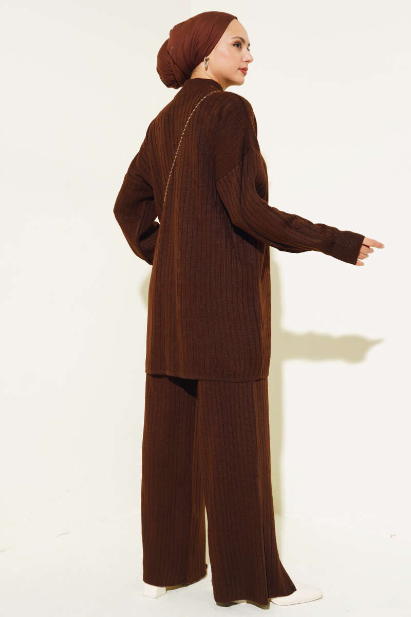 Taşlı Baklava Desen Triko İkili Takım Kahve
