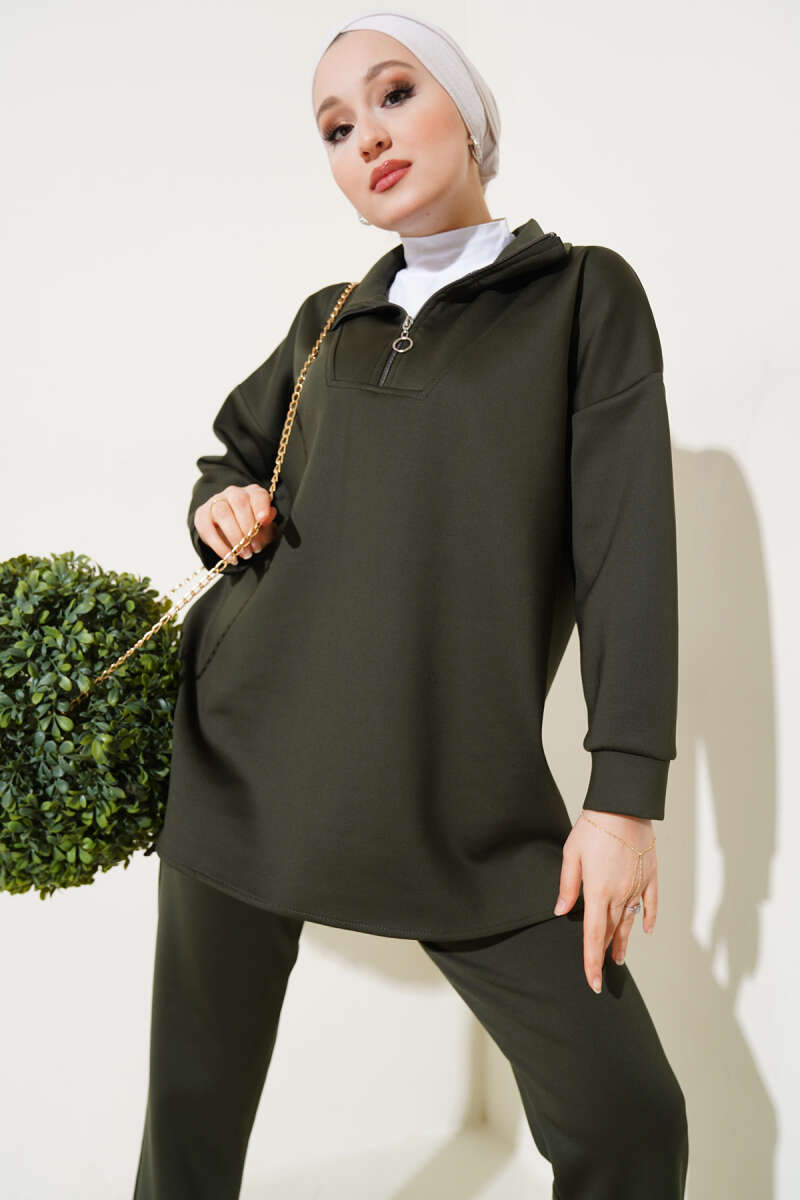 Yakası Yarım Fermuarlı Scuba İkili Takım Haki