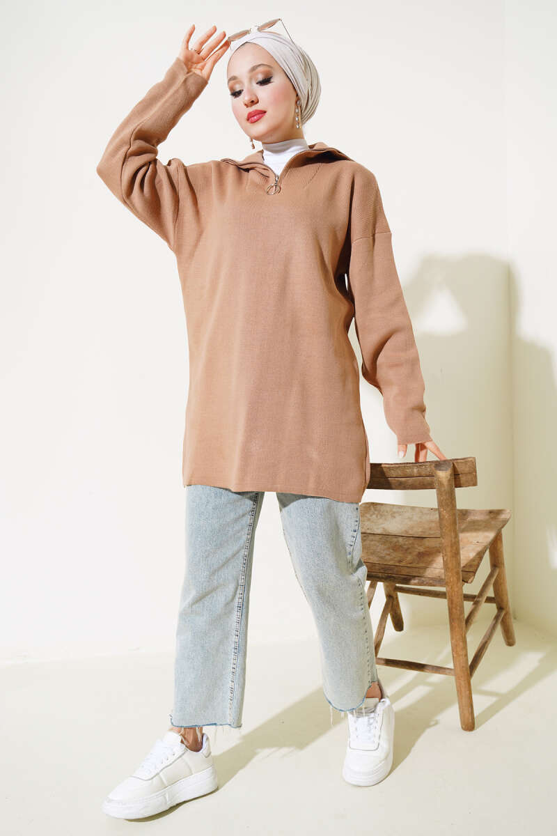 Basic Oversize Triko Tunik Haki